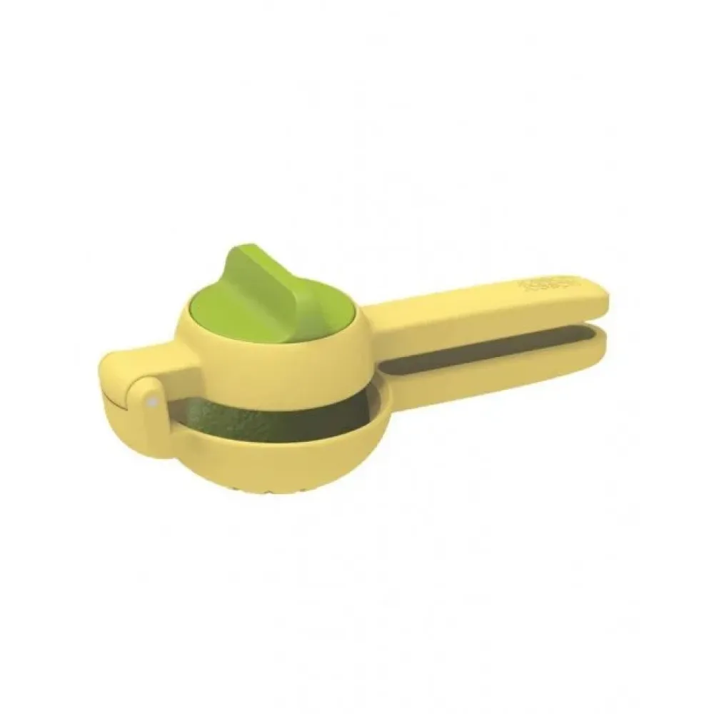 Дизайн двойного действия позволяет выжимать и скручивать - такой вариант 2 в 1 очень удобен. Сетка в основании удерживает косточки и мякоть для легкой утилизации. Достаточно просто легко сжать ручки изделия, чтобы достигнуть нужного результата.