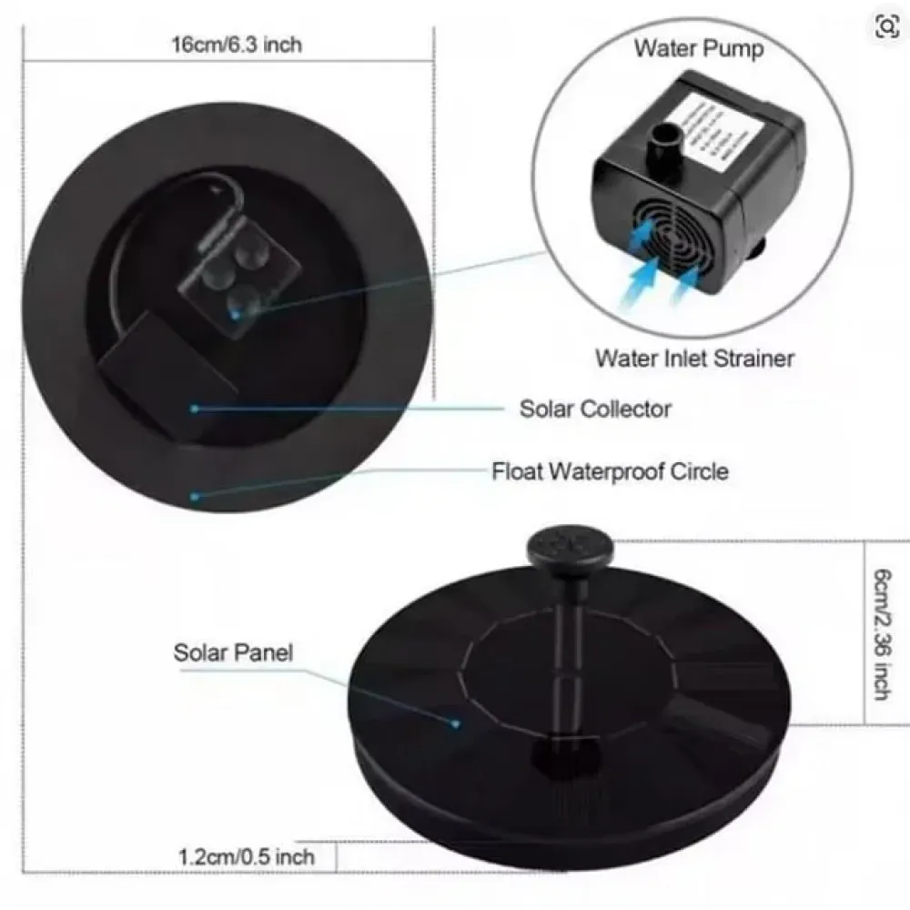 Украсьте свой сад живой водой с помощью солнечного фонтан-насоса. Устройство работает от солнечной батареи, не требует электричества и идеально подходит для пруда, бассейна, поилки для птиц или декоративных ёмкостей.
