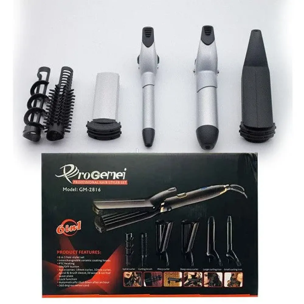 Мультистайлер профессиональный для выпрямления и завивки волос позволит Вам меняться изо дня в день, создавая неповторимые образы. Каждый элемент отличается высоким качеством. Товар подчеркивает вашу индивидуальность, Gemei GM-2816 6 в 1 и настроение каждый день.
