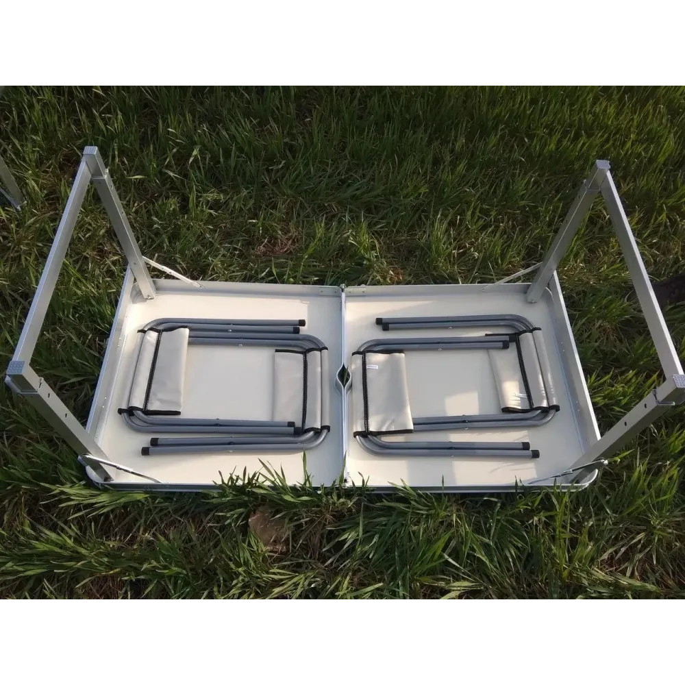 Стол алюминиевый Усиленный с 4 стульями складной для пикника · Стол – чемодан раскладной туристический со стульями