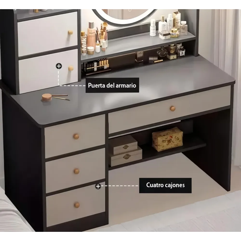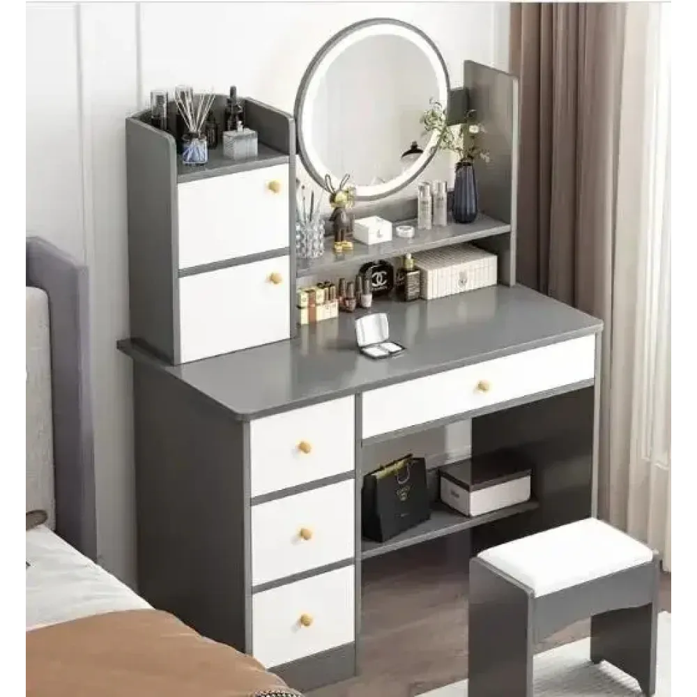 Модель оснащена удобными полками и вместительными ящиками, что позволяет аккуратно хранить косметику, аксессуары и средства по уходу. Прочные материалы и качественная сборка гарантируют долговечность, а продуманная конструкция делает использование максимально комфортным. Такой столик не только подчеркнёт ваш стиль, но и добавит уюта в спальню, гардеробную или зону с зеркалом.