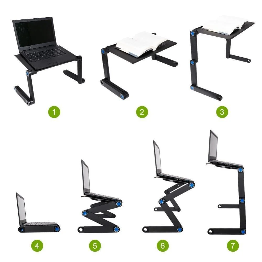 Столик для ноутбука быстро и легко трансформируется в нужное Вам положение: ножки столика состоят из 3 элементов, соединённые между собой вращающимися шарнирами, это обеспечивает вращение элементов, ножек на 360° относительно друг друга. Эта конструкция обеспечивает возможность установки подставки ― трансформера почти на любую поверхность (на пол, кресло, на диван или кровать и т.п.)