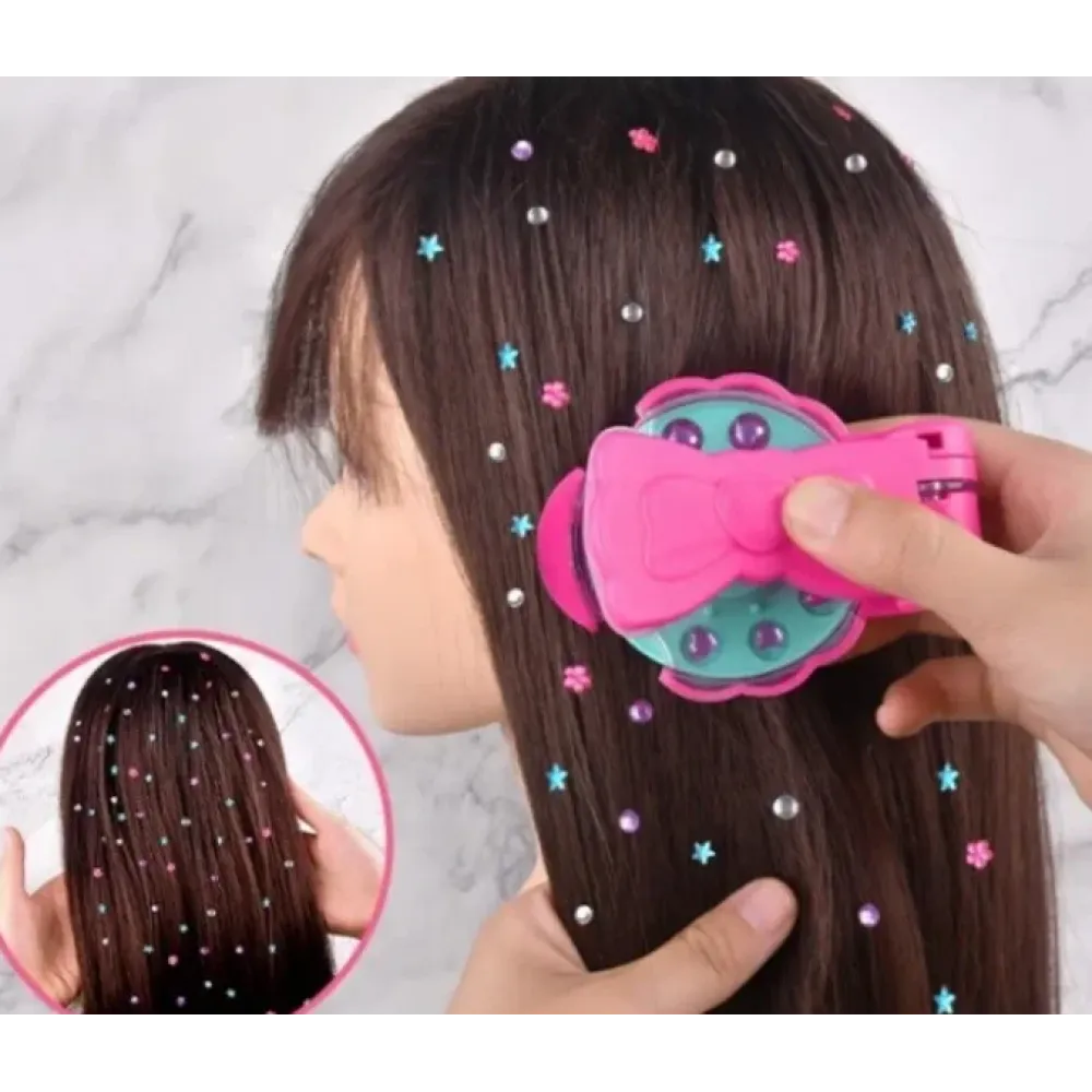 Этот волшебный набор для юного стилиста — идеальное решение для тех, кто мечтает выделяться. Украшай волосы, одежду, сумочки и другие аксессуары сверкающими стразами и создавай собственный стиль за секунды! Просто выбери нужный диск, нажми инструментом — и ты сияешь!