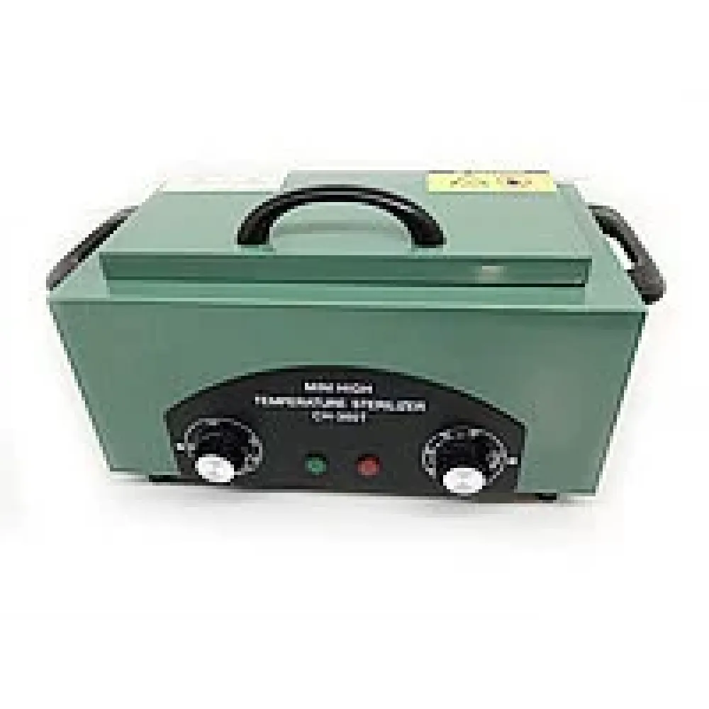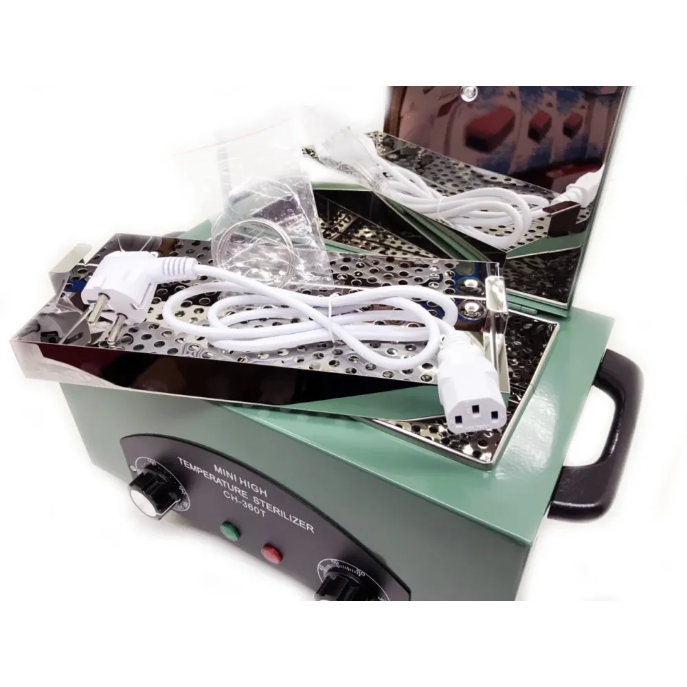 Регулятор температуры + лампочка-индикатор работы. С помощью регулятора температуры станет возможным настроить необходимые температурный режим для стерилизации. Температура определяется в зависимости от материала инструмента. Доступный температурный режим: от 0 до 220°C.
