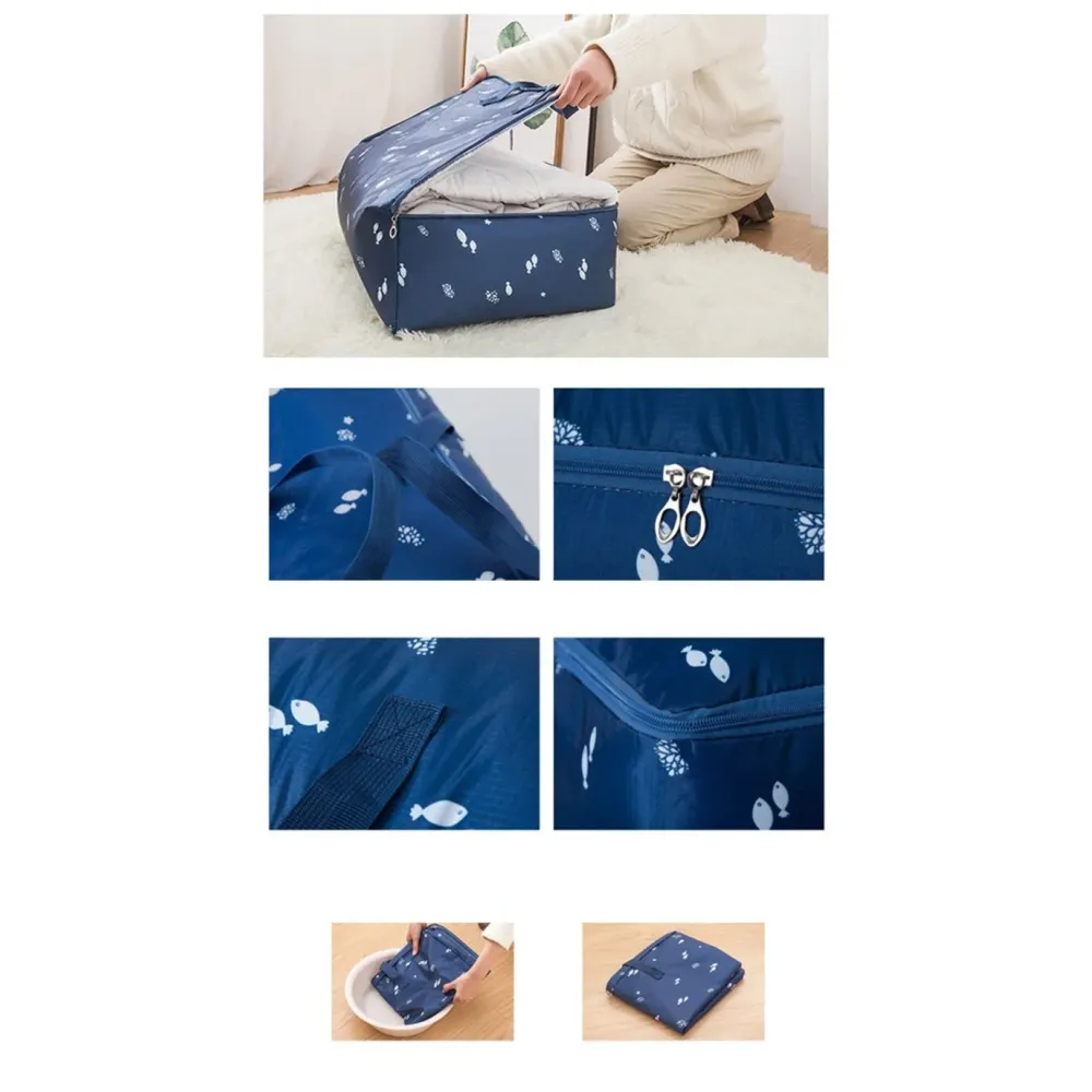 Удобный Органайзер для Хранения: Вместительность и Стиль в Одной Сумке Преобразуйте свое пространство хранения с нашей многофункциональной сумкой-органайзером. Она идеально подходит для хранения одежды, белья, одеял и игрушек, предоставляя простор и порядок в вашем доме. Большой размер 58 х 38 х 22 см обеспечивает достаточно места для разнообразных вещей. Выберите стиль, который подходит вам — синий с милыми рыбками или серый с изысканным узором роз. Эта складная и влагостойкая сумка из ткани Оксфорд сделает вашу жизнь более удобной и стильной.