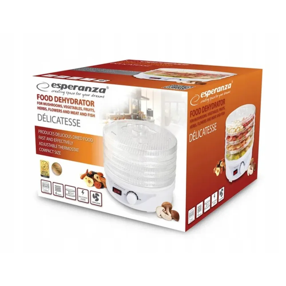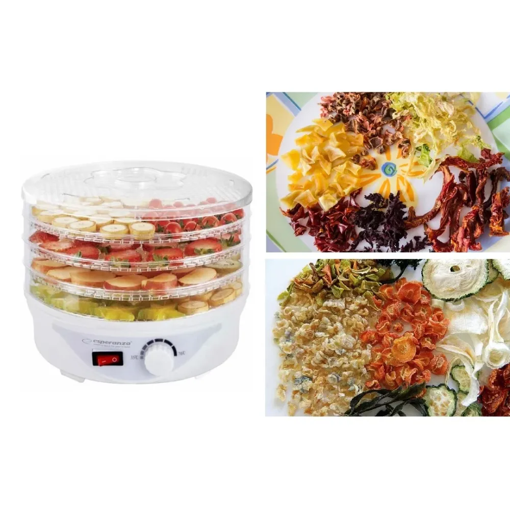 Сушилка - дегидратор для овощей, фруктов, грибов и трав Esperanza EKD003 ∙ Электрический сушильный аппарат – овощесушка, 250 Вт поможет испарить воду из продуктов и сохранить их вкус и полезные свойства надолго. Таким образом, вы можете наслаждаться вкусом грибов, фруктов и овощей круглый год!