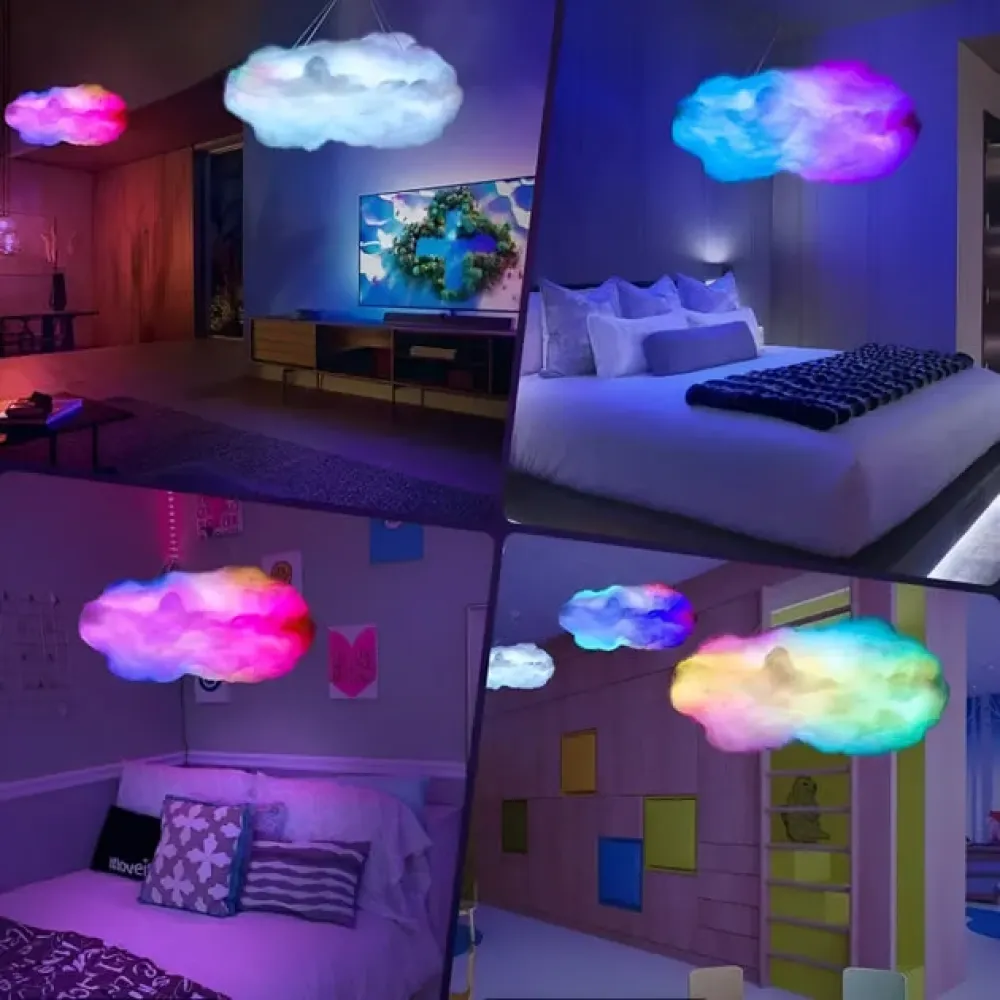 Светильник-облако DIY Cloud Atmosphere Light — оригинальный декоративный элемент, создающий уют и стиль в любом интерьере. Объёмная форма облака в сочетании с мягкой разноцветной LED-подсветкой делает его эффектным акцентом для спальни, гостиной, детской комнаты, вечерних мероприятий и фотосессий. Лёгкий вес и простая сборка позволяют легко установить светильник самостоятельно и при необходимости переносить.
