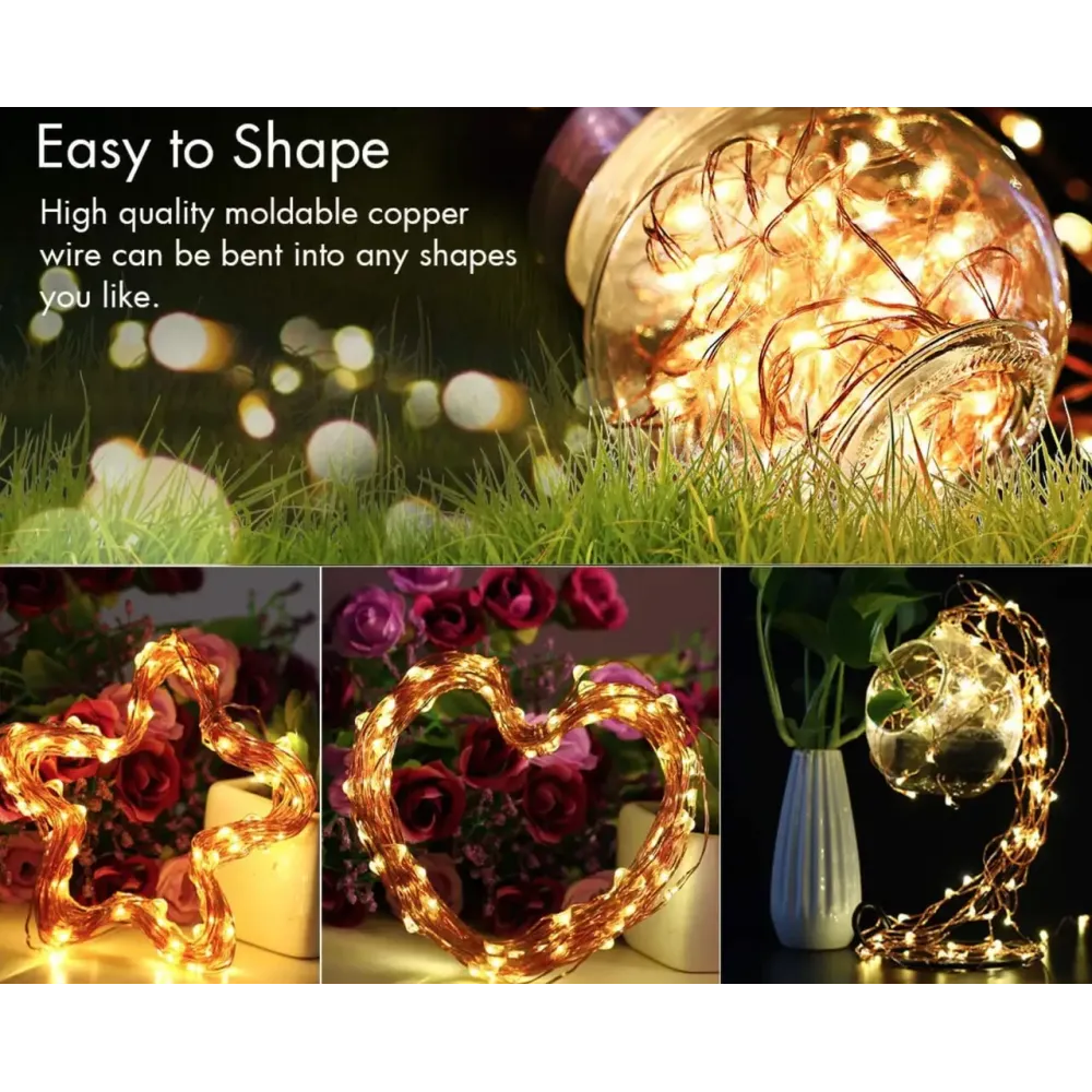 Гирлянда выполнена из качественных материалов, а гибкая медная проволока позволяет легко придавать ей любую форму — обернуть вазу, зеркало, цветочную композицию или украсить праздничный стол. Мягкий тёплый свет создаёт уютную атмосферу и добавляет комфорта.