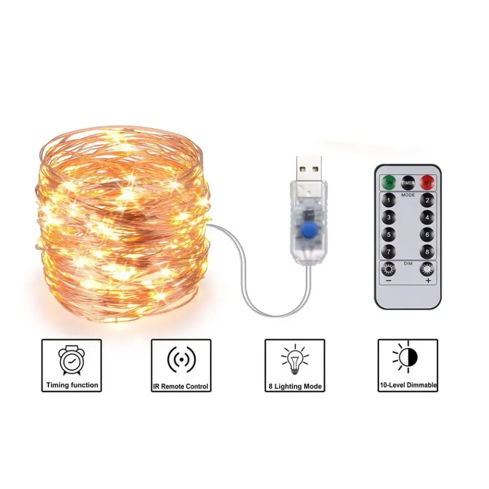 Светодиодная гирлянда Роса USB 2 метра с пультом дистанционного управления ∙ Гирлянда медная проволока 200LED 2M USB XL-76-20