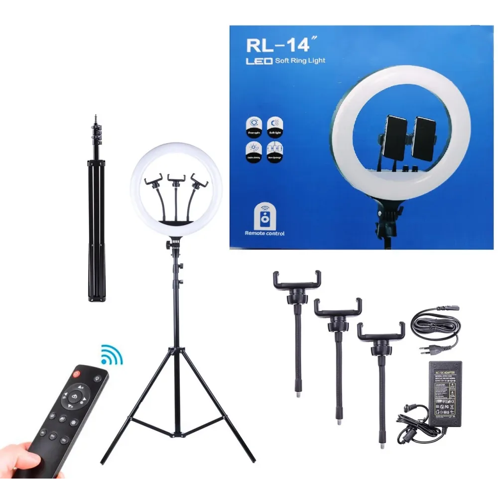 Кольцевая светодиодная лампа LED Soft Ring Light RL-18 имеет 512 SMD светодиодов, которые обеспечивают равномерный свет, без мерцания. Лампа подключается к сети 220V и не нагревается даже после долгого периода работы.Плавная регулировка температуры и яркости света осуществляется двумя диммерами, находящимися на корпусе кольцевого осветителя.
