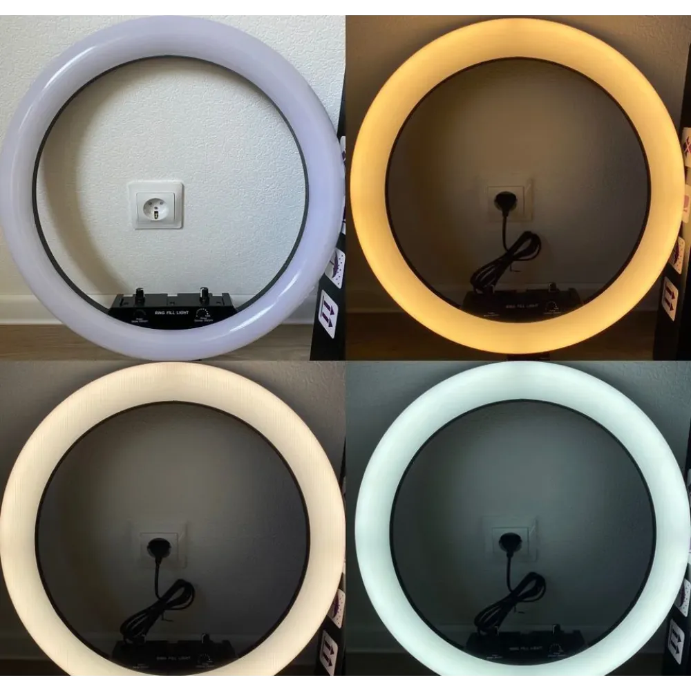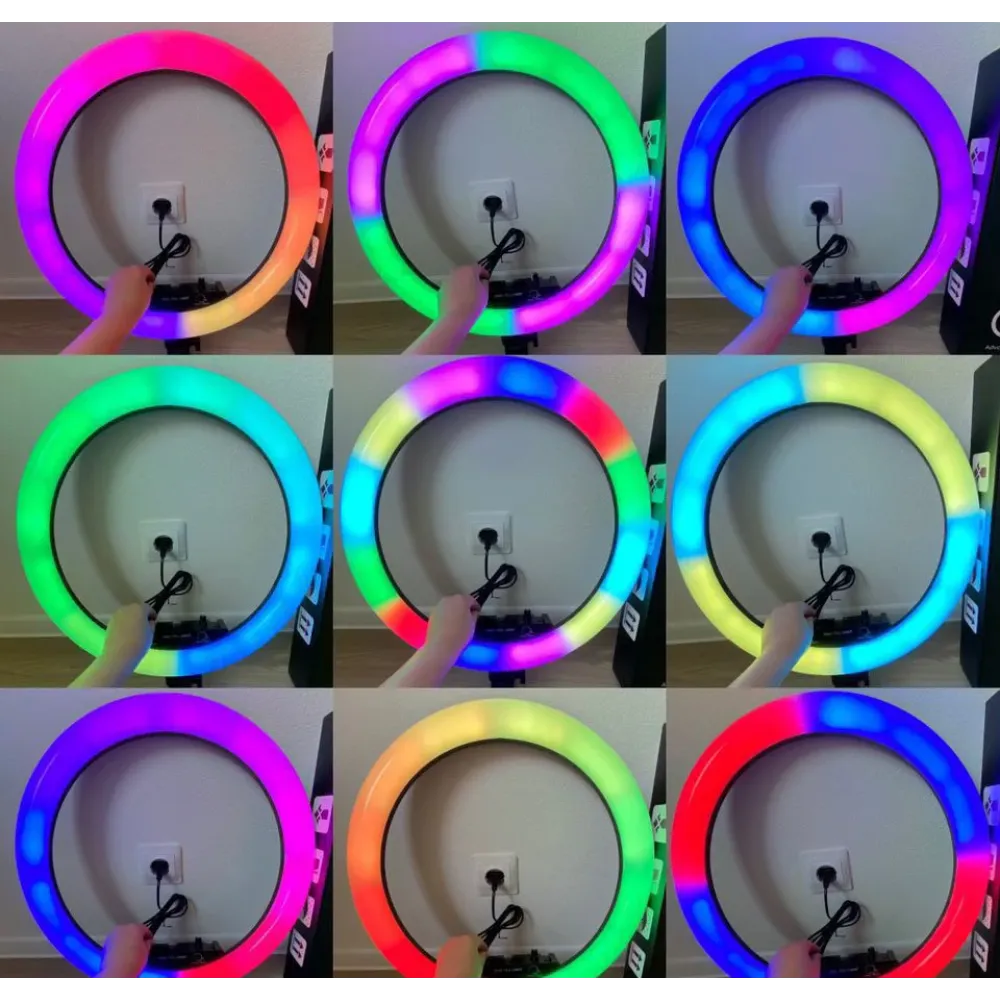 Главное в лампе это-цветной свет. Именно он отвечает за необычные эффекты, подсветку, детализацию с использованием одного или нескольких оттенков. Всего доступно 16 цветовых схем, созданных на основе 6 цветов, не считая белого, нейтрального и тёплого цвета как и у обычных кольцевых ламп.