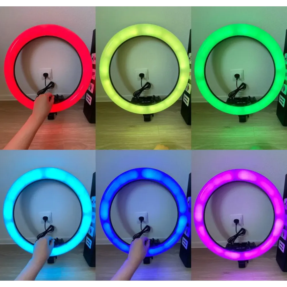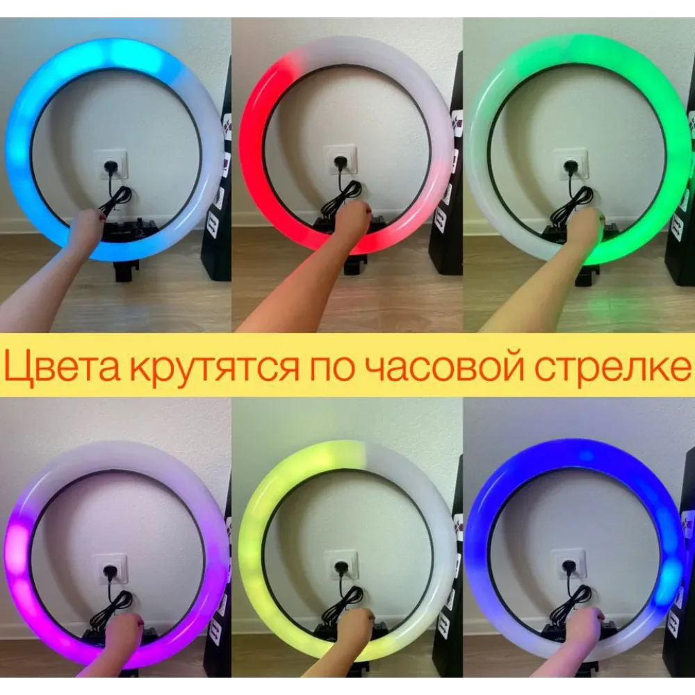 Кольцевая лампа RGB LED MJ18 46см — продуманный и полезный подарок блогеру, мастеру тату или визажисту, фотографу или видеооператору.