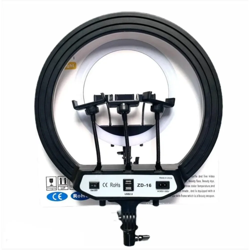 Кольцевая led лампа с держателем для телефона ZD-16, диаметром 40 см – это профессиональное освещение, которое доступно каждому. Такое освещение необходимо как для высококачественной фото и видеосъемки, так и как дополнительный источник света, когда основного не хватает. Его используют фотографы, блогеры, визажисты и косметологи...