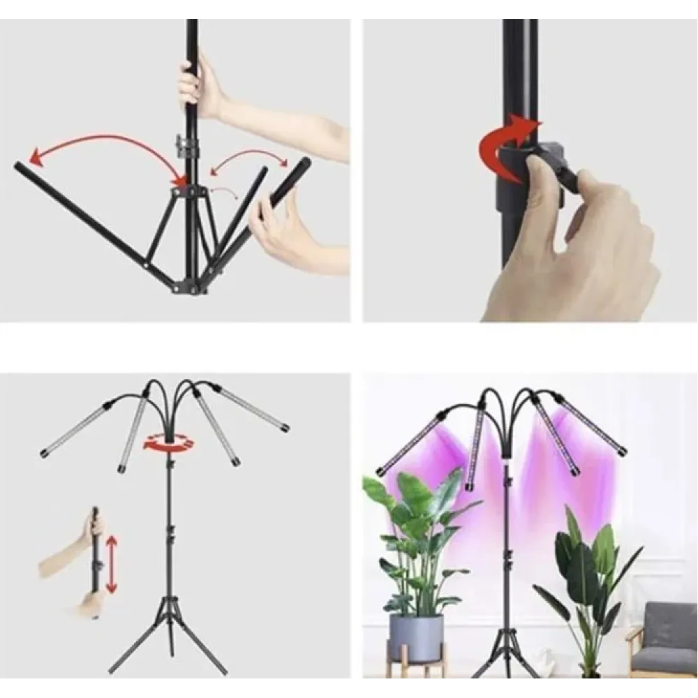 Заказывайте Светодиодная лампа для фотосинтеза растений с 4 линиями освещения на штативе • LED-лампа для роста рассады и комнатных растений с 4 линиями прямо сейчас на нашем сайте!