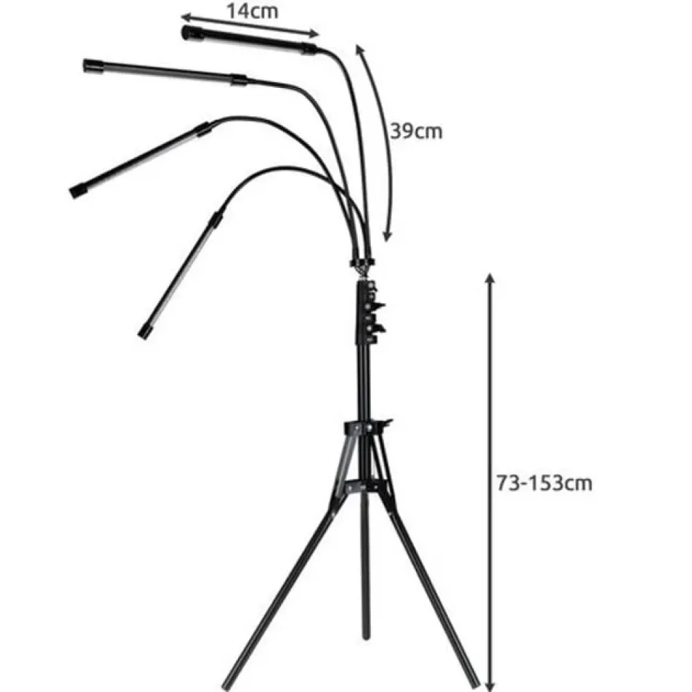 Светодиодная лампа для фотосинтеза растений с 4 линиями освещения на штативе • LED-лампа для роста рассады и комнатных растений с 4 линиями