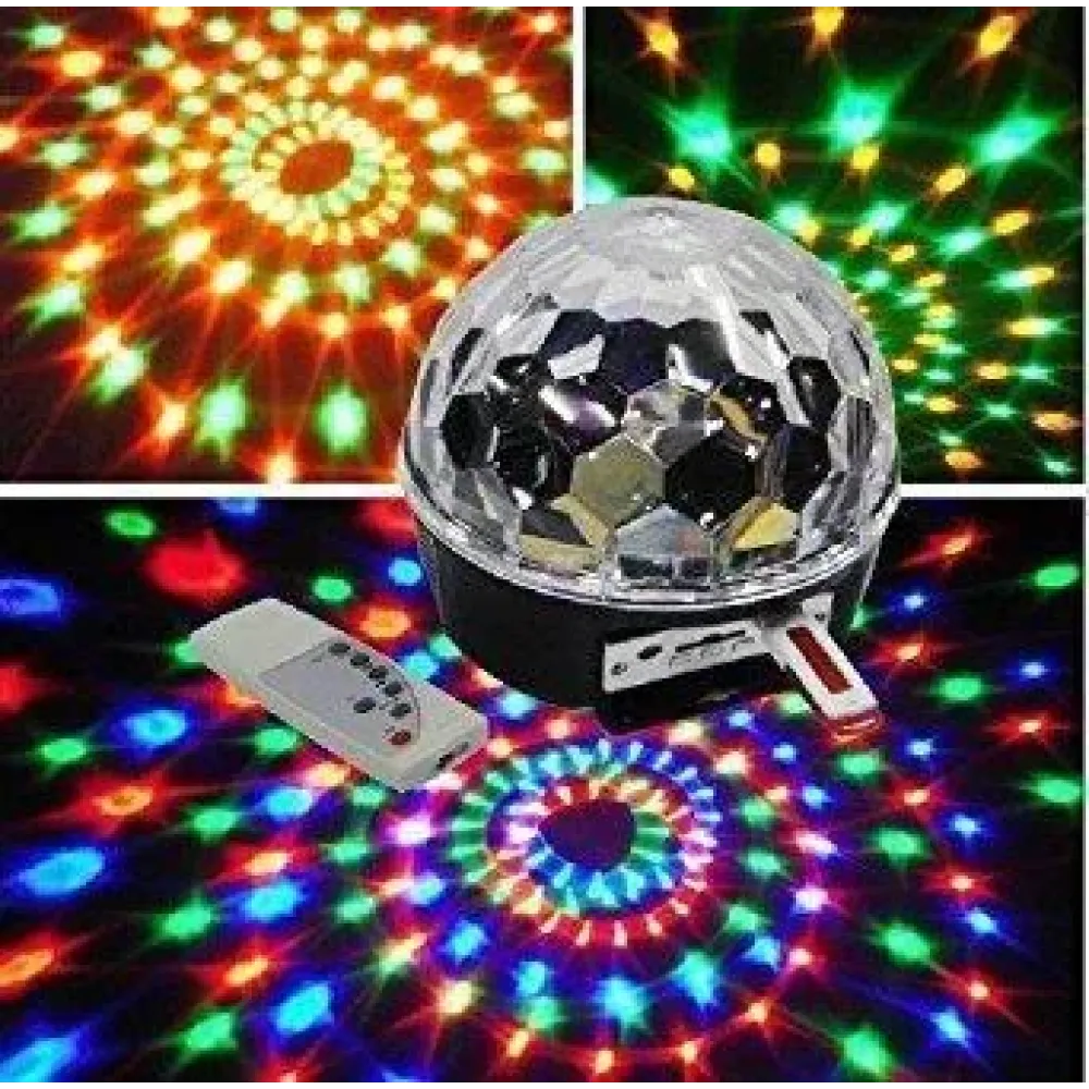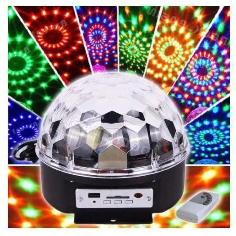 Диско шар имеет вход для карт памяти и USB-порт, поэтому он может считывать музыку с различных носителей информации в формате МР3 и воспроизводить её. Для этого устройство оснащено двумя динамики, мощностью 10 Ватт.