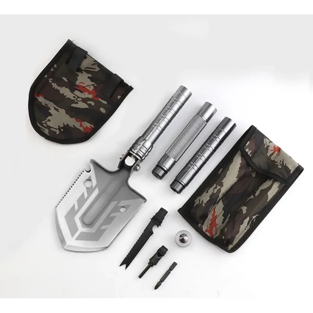Тактическая саперная лопата 16 в 1 – это многофункциональный инструмент, который станет отличным помощником в походах, на рыбалке, в путешествиях и экстремальных условиях. Изготовленная из углеродистой стали, она сочетает в себе 16 функций, включая лопату, топор, пилу, отвертку, нож, молоток и многое другое.
