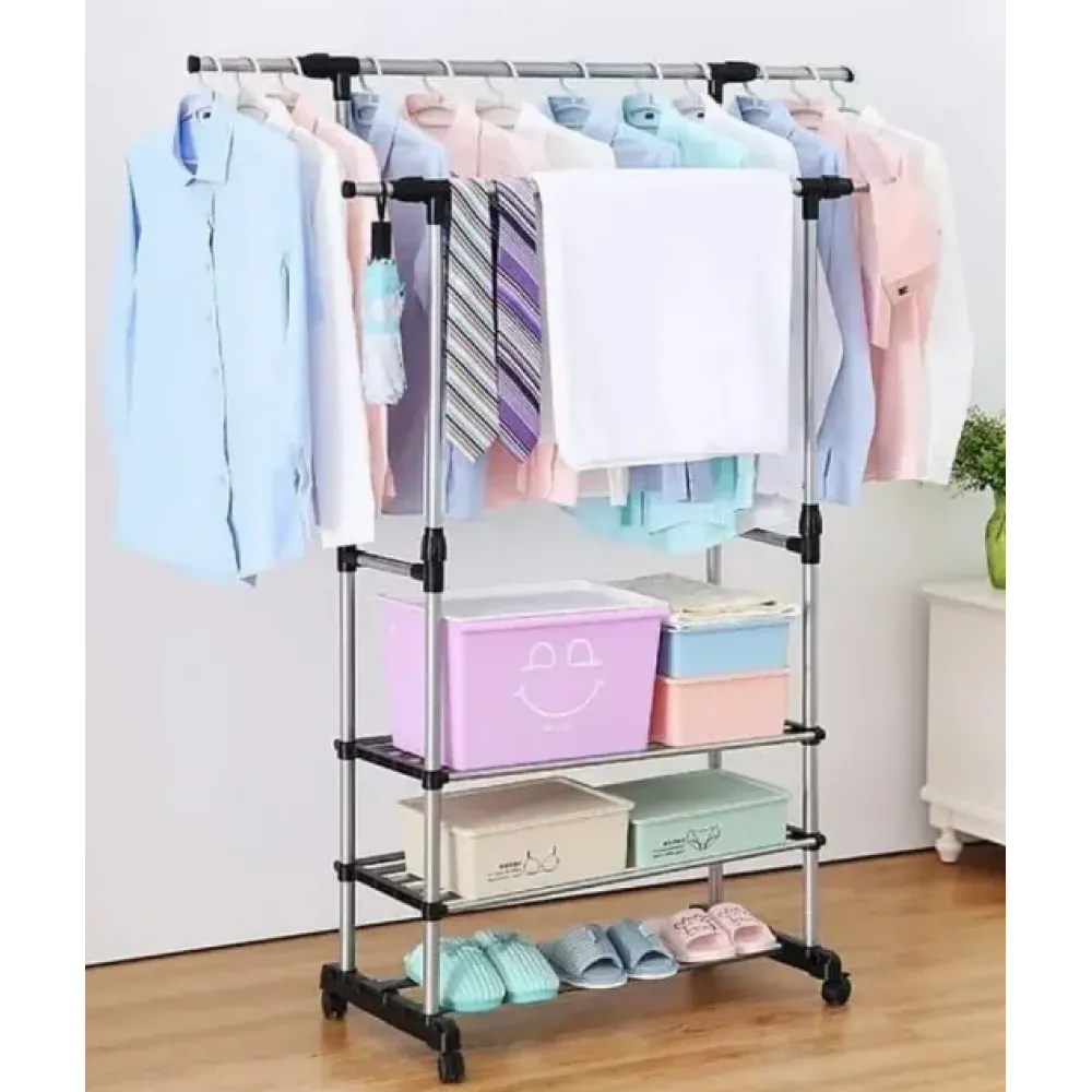 Заказывайте Телескопическая передвижная стойка – вешалка Colgador doble ajustable с полками для одежды прямо сейчас на нашем сайте!