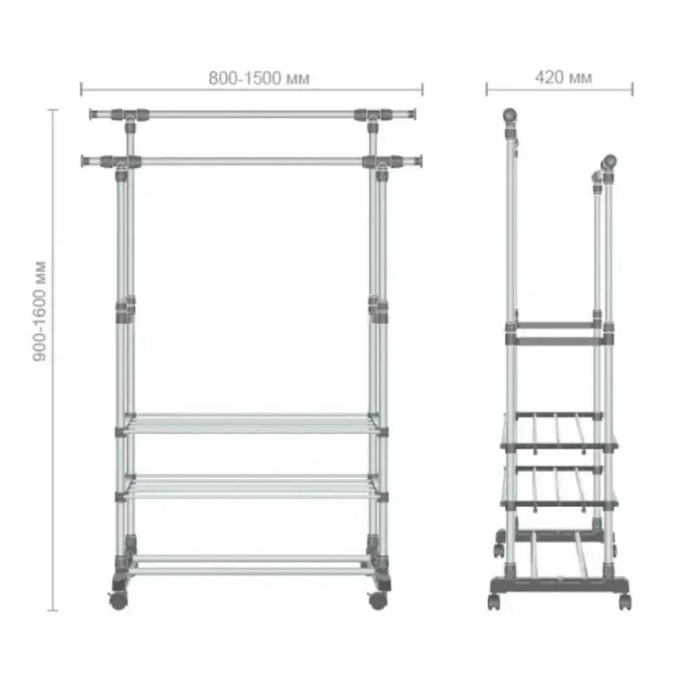 Телескопическая передвижная стойка – вешалка Colgador doble ajustable с полками для одежды
