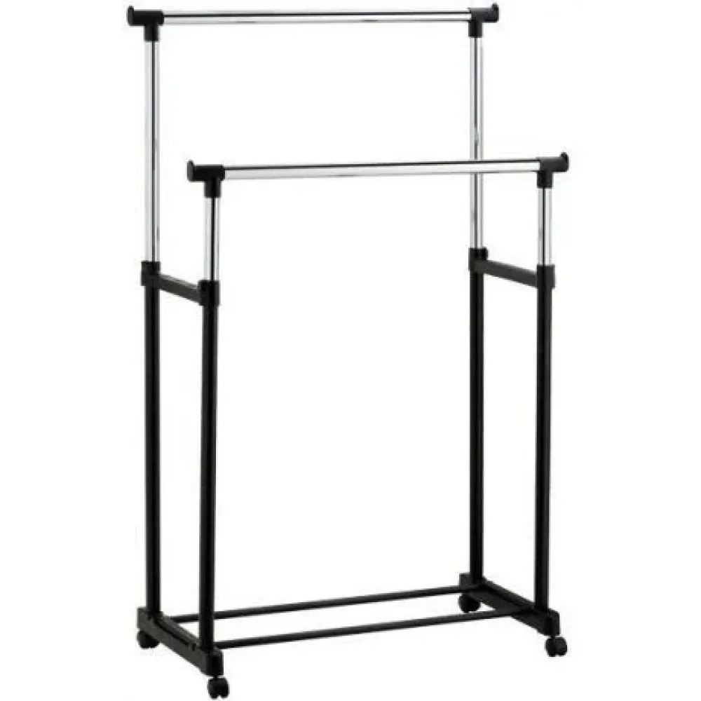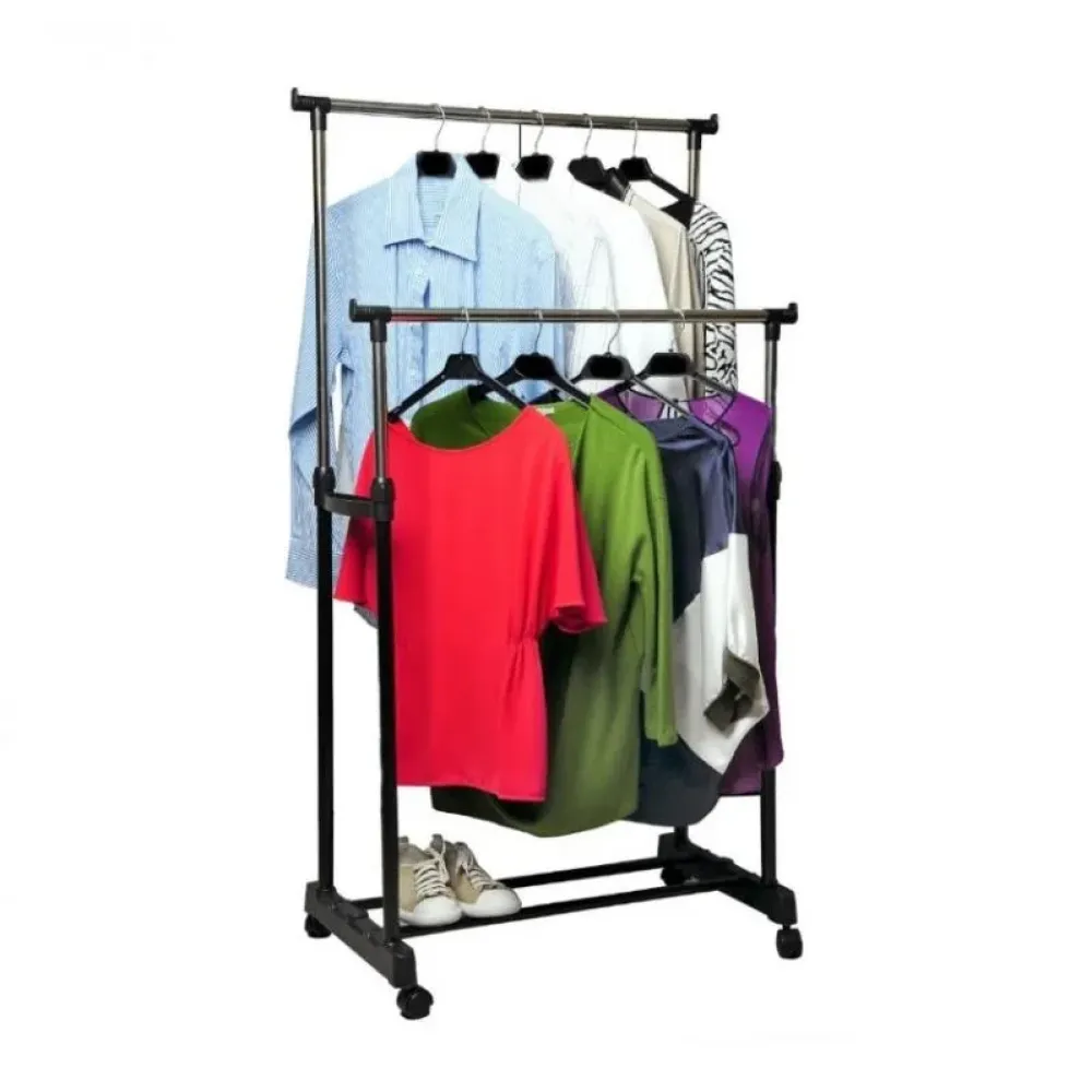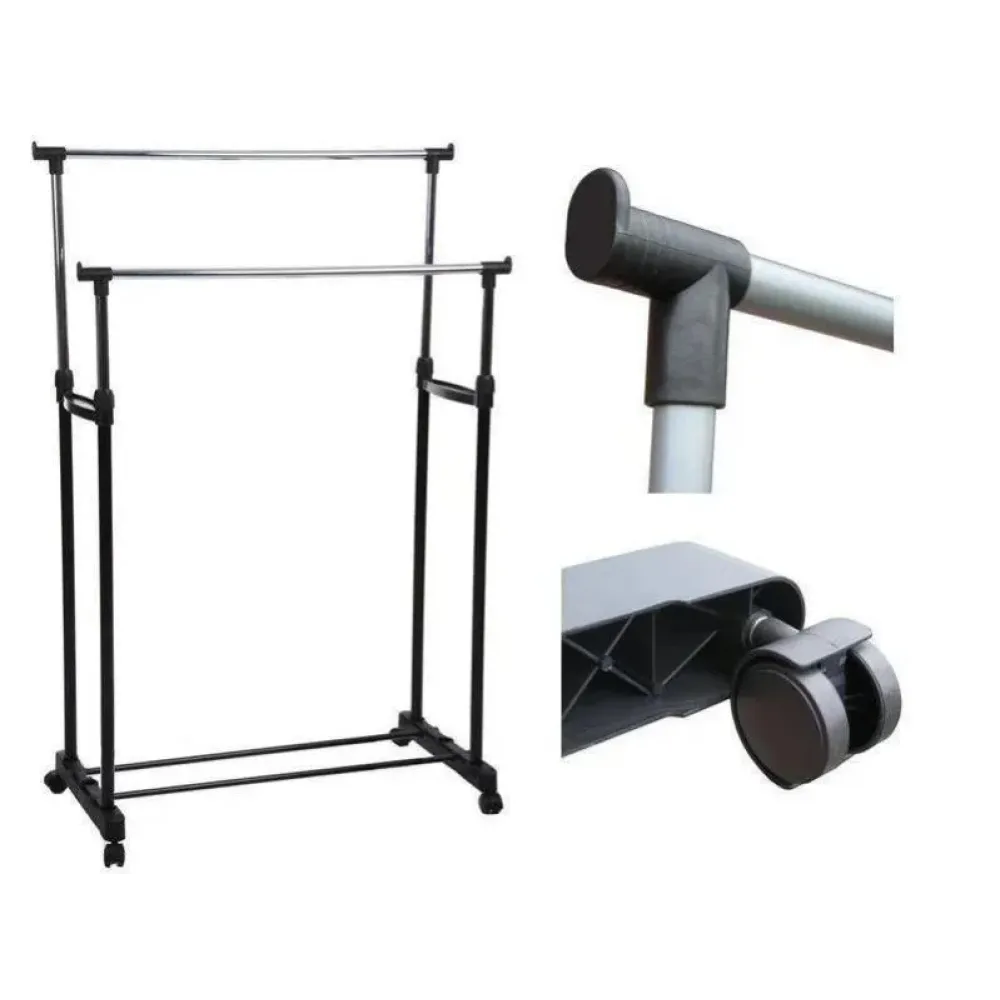 Большим плюсом стойки для одежды Double Pole Clother Hose является наличие небольших колесиков, благодаря которым Вы сможете передвинуть стойку даже полностью завешенную одеждой.