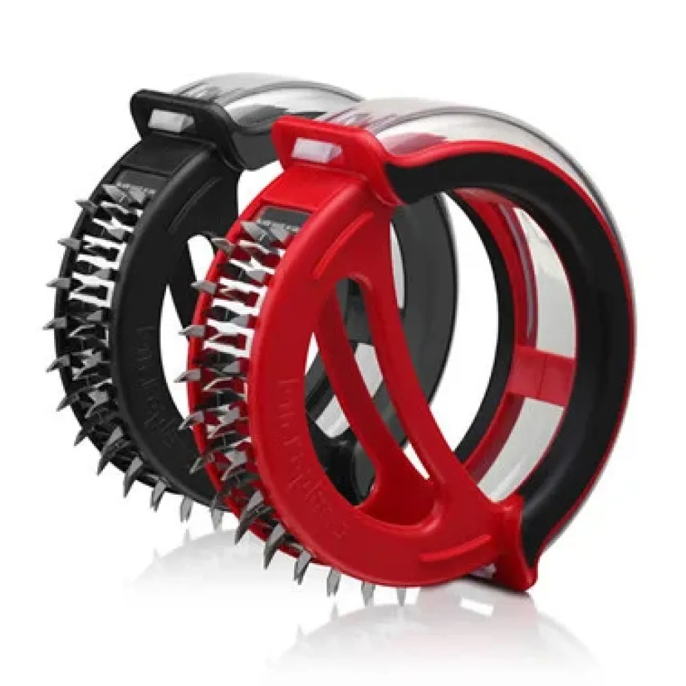 Принципом работы тендерайзера (размягчителя) является прокалывание мяса острыми лезвиями при нажатии на его рабочую рукоять. При такой обработке внешний вид куска не меняется, но при тепловой обработке мясо становится мягким и сочным.