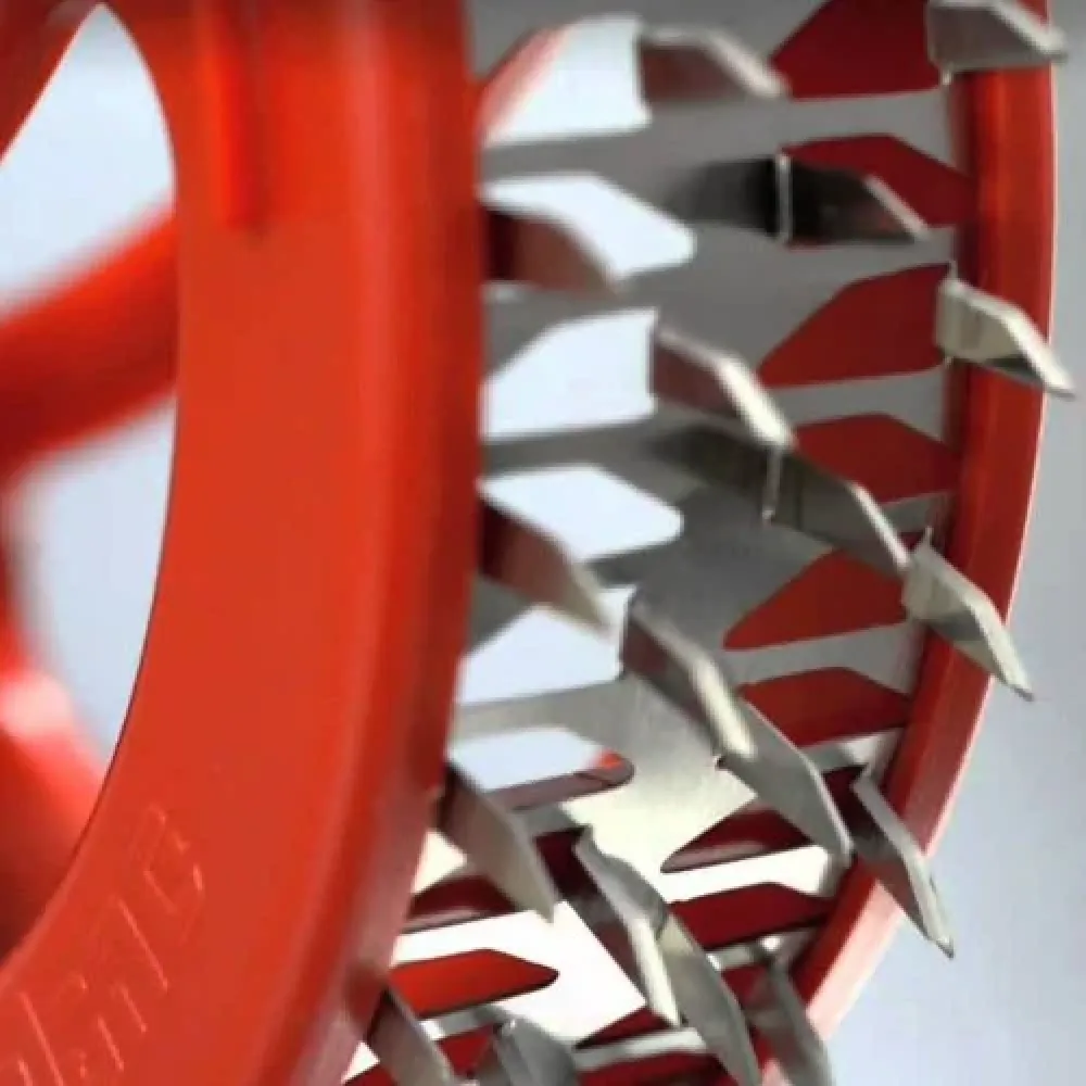 Круглый тендерайзер с технологией игольчатых лезвий позволяет обрабатывать мясо и рыбу без шума и брызг, сокращает время маринования на 70% и время приготовления в духовке или гриле на 50%.