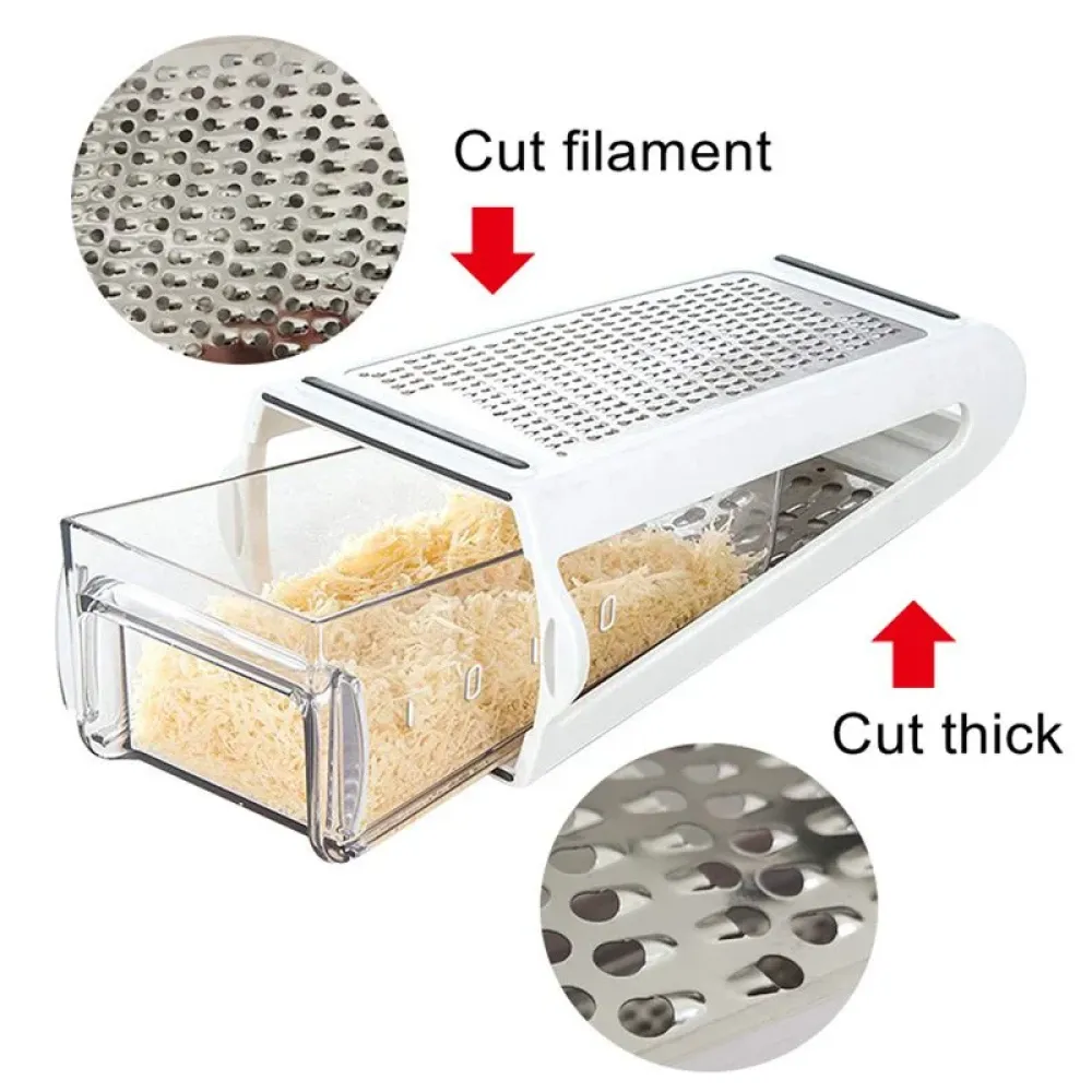 Лезвия нашей терки изготовлены из нержавеющей стали, что гарантирует их прочность и долговечность. Рукоятка из пластика обеспечивает комфортное и надежное удержание терки во время использования. Основание терки обеспечивает устойчивость и предотвращает скольжение по поверхности стола, обеспечивая вам безопасность и контроль над процессом натирания.