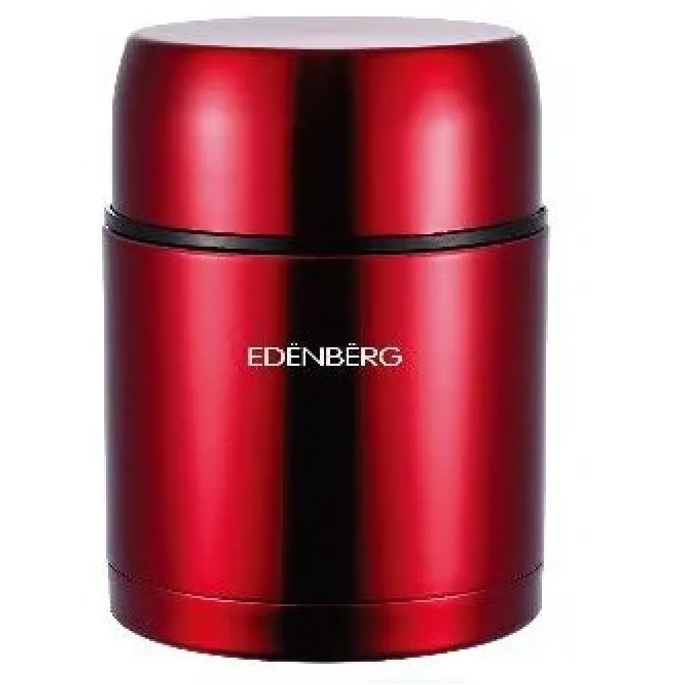Термос для еды всегда может выручить в холодную, противную погоду и станет настоящим спутником в походах, пикниках или на работе. В нём каждый сможет хранить например жидкие продукты, супы или вторые блюда. Термос Edenberg EB-3509 будет долго сохранять нужную температуру внутри – всё благодаря качественным двойным стенкам. Он имеет небольшие и компактные размеры, поэтому у Вас не возникнет проблем с его транспортировкой. Термос изготовлен из экологически чистой нержавеющей стали, которая не выделяет вредных веществ и не влияет на вкус жидкости.