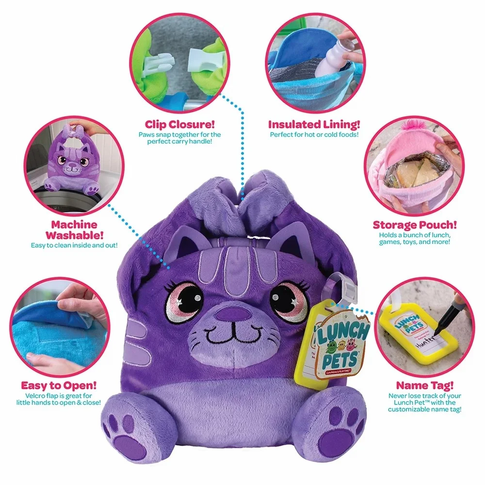 Lunch Pets – это не просто термосумка, а настоящий друг, который будет сопровождать вашего ребенка на каждом шагу! Эта очаровательная и функциональная сумка идеально подходит для хранения обедов и перекусов, сохраняя их свежими в течение всего дня. Благодаря изолированной подкладке, тепло остается внутри, а еда – вкусной и готовой к употреблению. Изготовленная из высококачественного плюша, термосумка Lunch Pets также служит мягкой игрушкой, с которой приятно обниматься и играть.