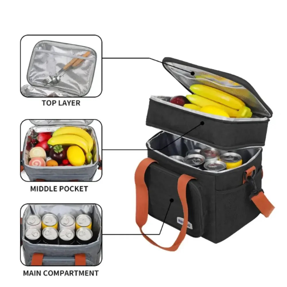 Сумка оснащена двумя вместительными отделениями, что позволяет разделять продукты и напитки, сохраняя их в порядке. Удобные плечевые ремни обеспечивают комфорт при переноске, а легкий вес и компактные размеры делают сумку мобильной и удобной для транспортировки. Водонепроницаемое дно защищает содержимое от влаги, а современный и яркий дизайн делает термосумку стильным аксессуаром, который дополнит любой образ.