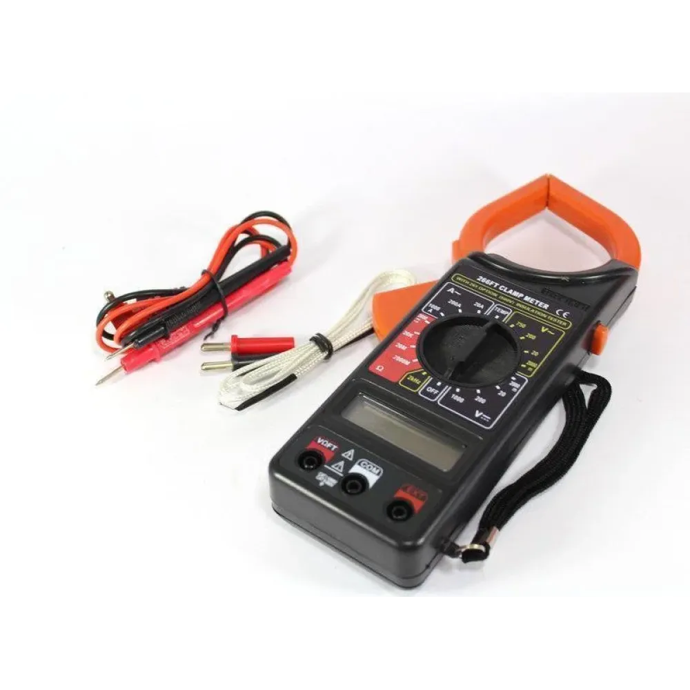 Токоизмерительные клещи ― 266-FT – удобная в использовании, бюджетная модель мультиметра с клещами, которые раскрывается на ширину 5 см. Поставляется в удобном чехле-сумке из искусственной кожи, с карманами для аксессуаров, измерительными щупами, термопарой для измерения температуры, руководством пользователя, и батареей питания. Корпус токовых клещей-мультиметра 266FT изготовлен из прочной пластмассы, выдерживающей различные рабочие условия. Форма мультиметра – эргономична, его удобно держать в одной руке, указательным пальцем раскрывая клещи.