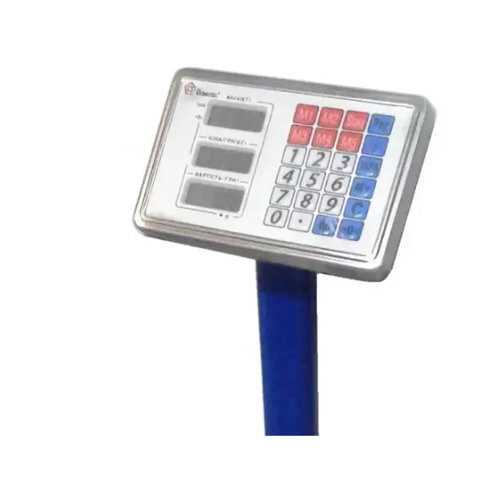 Напольные электронные весы с прочным стальным корпусом и торговым индикаторами (цена, масса, стоимость).