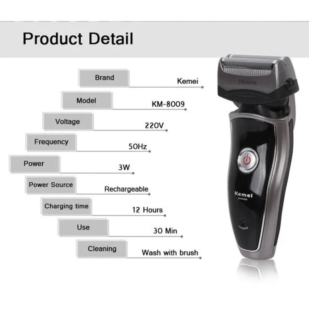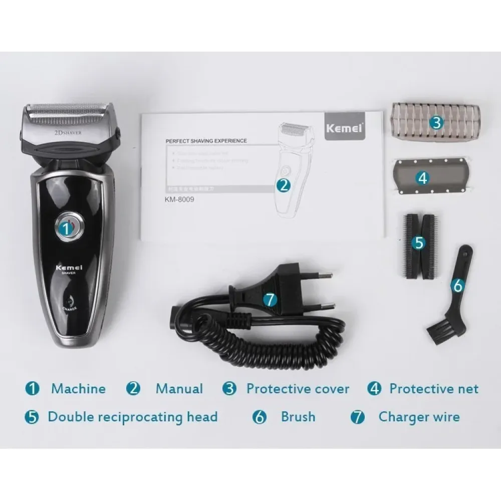 Безопасная аккумуляторная бритва Kemei KM 8009, имеет плавающие бритвенные головки. Используется в беспроводной сети, удобно работать.