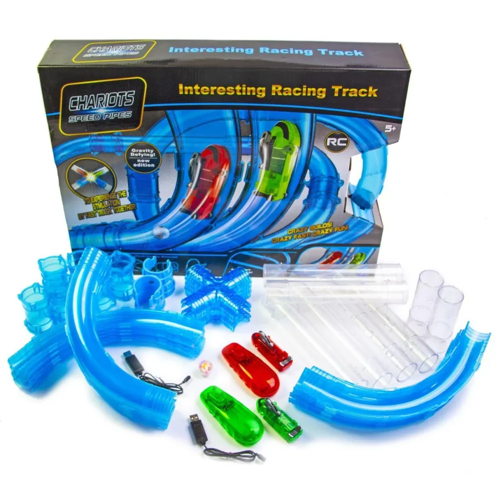 Трубопроводный автомобильный трек · Гонки в трубе Chariots Speed Pipes · Трубопроводные гонки – автотрек 37 деталей — это гоночные машинки в комплекте со светящимся шариком, которые развлекут активных любознательных детей и даже взрослых, а также станут отличным подарком для ребенка!