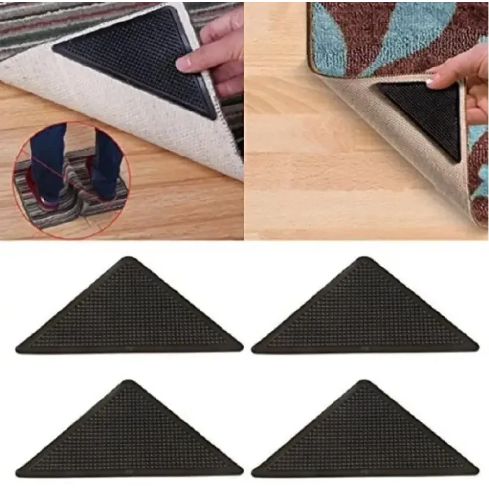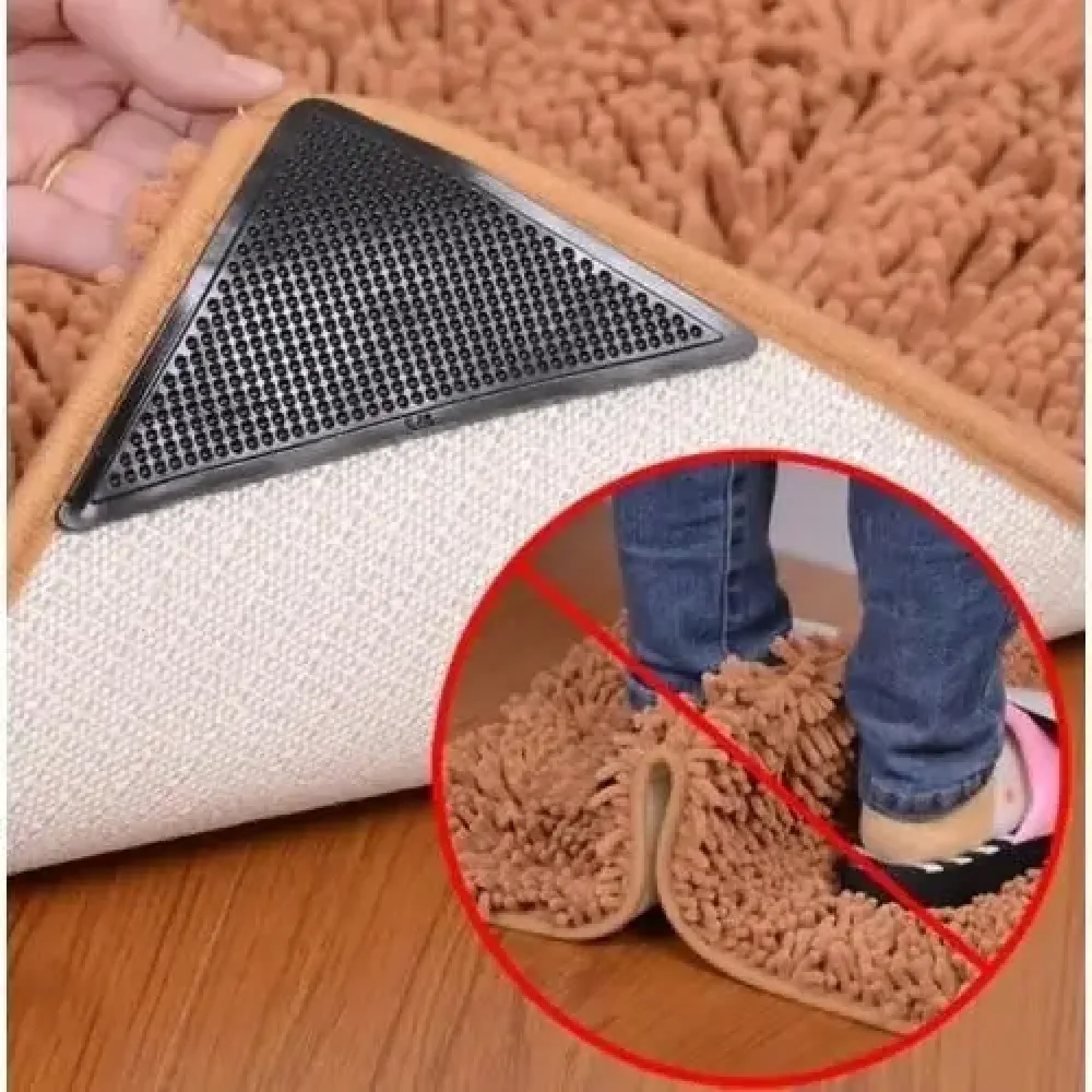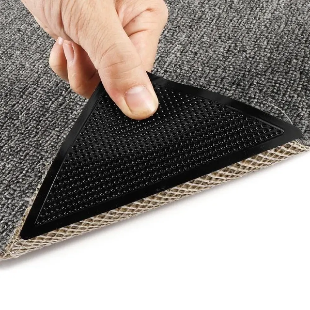 У набір входить 8 резинових кутків і 8 бумажних кутків. Просто приклейте куток до ковру, щільно прижміть і встаньте на кут ковру, таким чином, закріпивши куток.