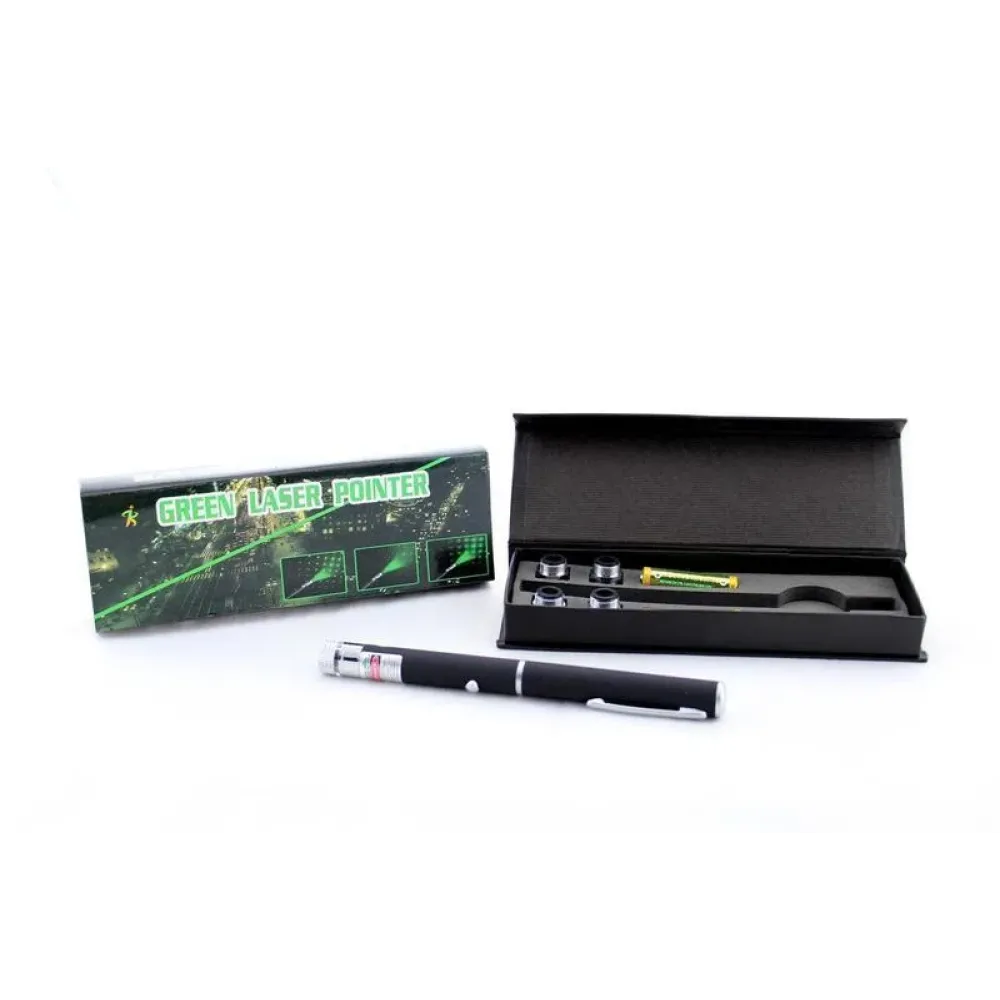 Почувствуйте себя настоящим джедаем с лазерной указкой Green Laser Pointer! Данная лазерная указка имеет 5 разных насадок для различного типа свечения.