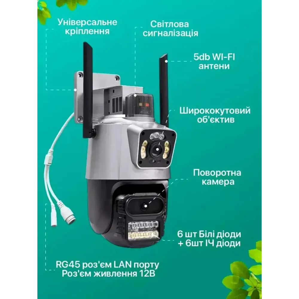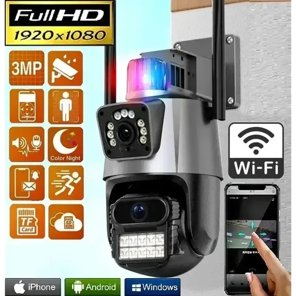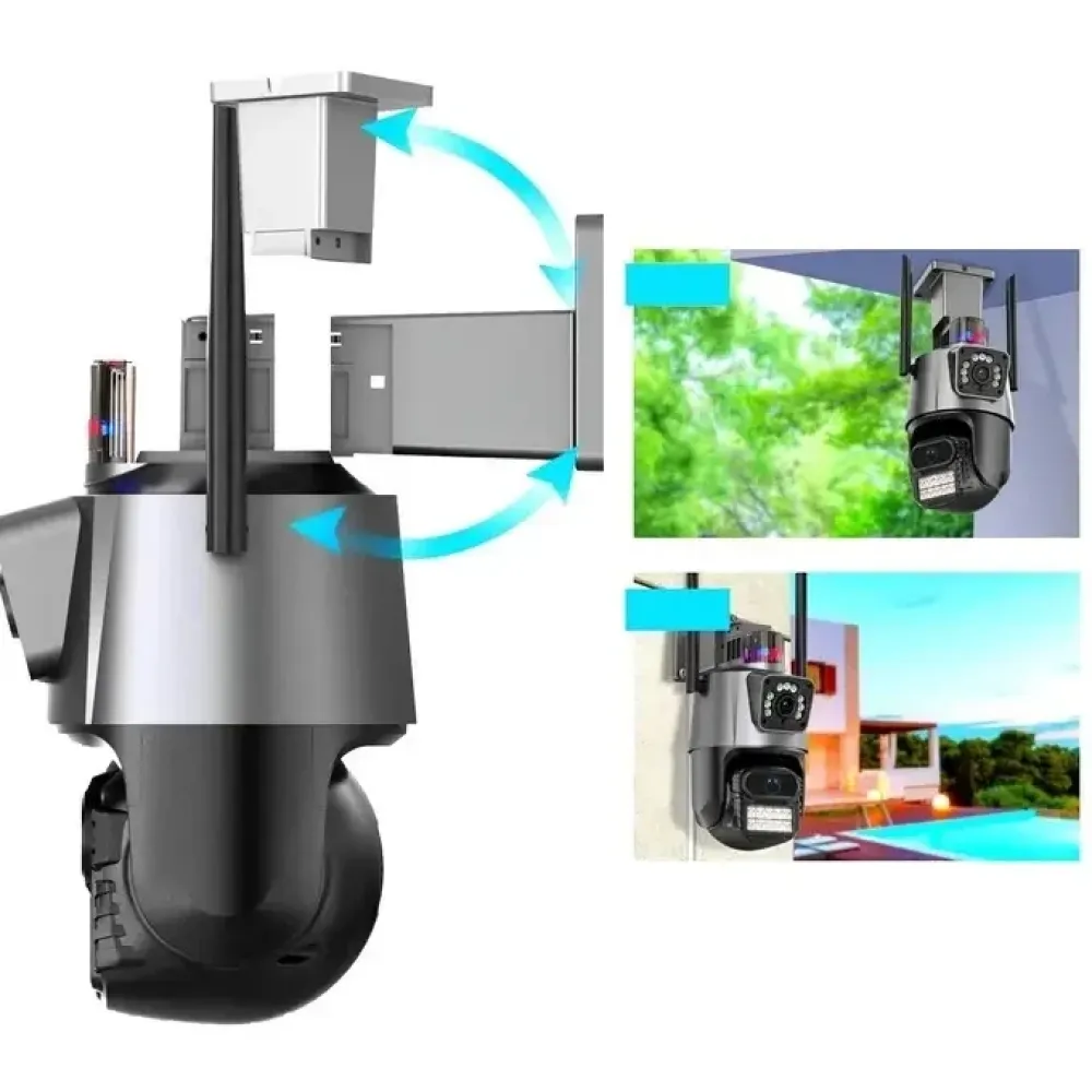 Уличная поворотная Wi-Fi камера Dual Lens Zoom 8MP — это современное решение для круглосуточной охраны частного дома, дачи, склада или двора. Она оснащена двумя объективами (широкоугольным и телескопическим), что позволяет одновременно следить за происходящим вблизи и вдали. Камера работает через приложение iCSEE, поддерживает онлайн-просмотр, запись на карту и облако, а также имеет встроенную сирену для отпугивания нарушителей.