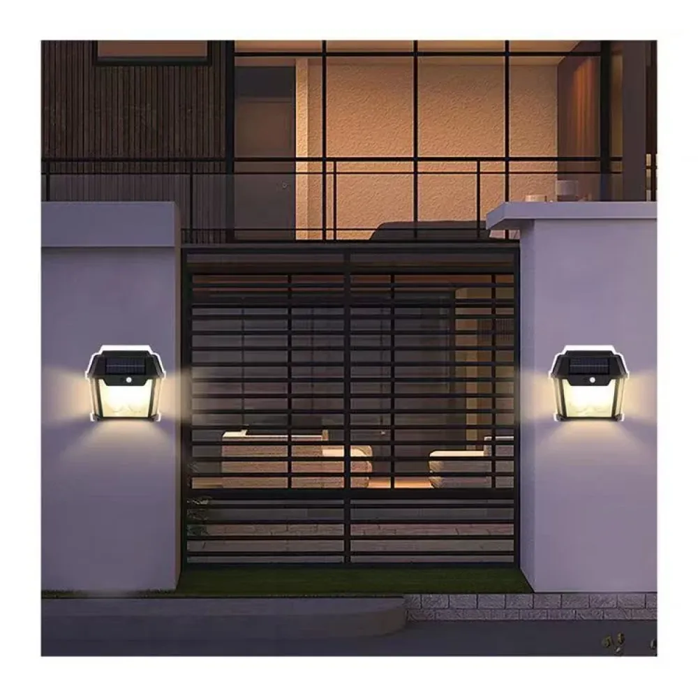 Уличный фонарь на солнечной батарее с датчиком движения HW 999-2W Solar Interaction Wall Lamp · Настенный наружный светильник · 3 режима освещения