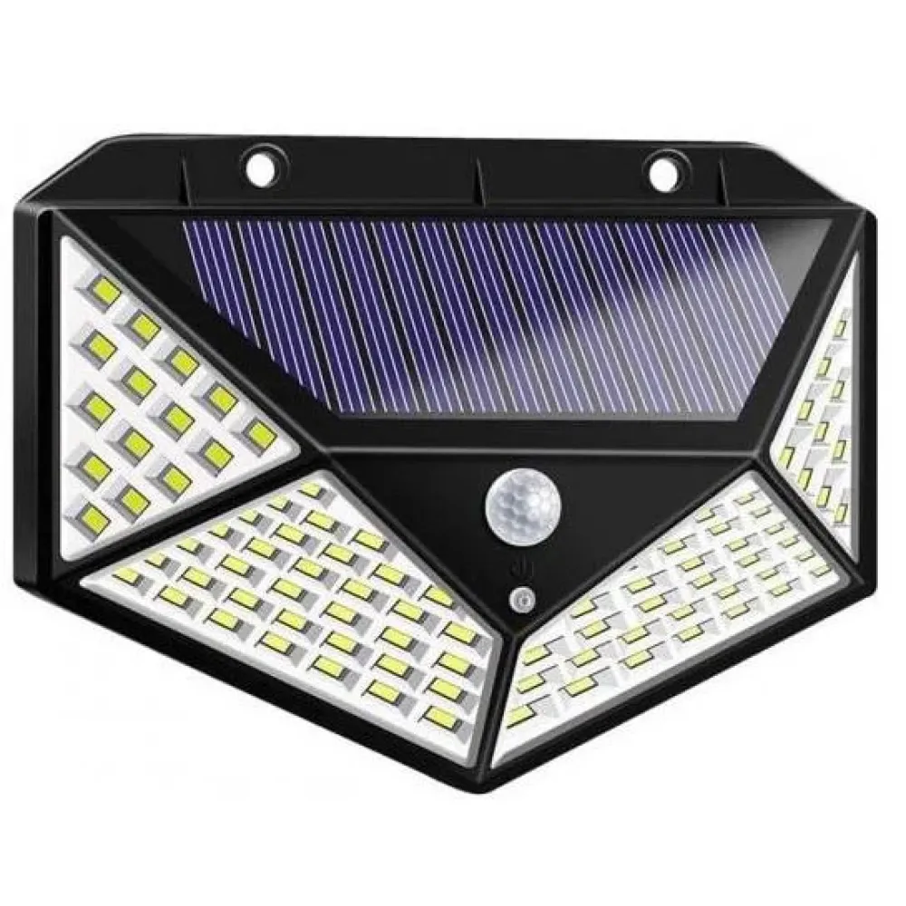 Уличный настенный светильник Lesko SH-100 на солнечной батарее с датчиком движения 100 LED диодов Этот 100-диодный светильник преобразует солнечную энергию, полученную в течение светового дня, в электрическую и накапливает ее во встроенном аккумуляторе емкостью 600 мАч. Ночью светильник включается автоматически. Время его свечения зависит от продолжительности светового дня, места установки, погодных условий и выбранного режима работы. 100 светодиодов обеспечивают высокий уровень яркости при подсветке большого пространства.