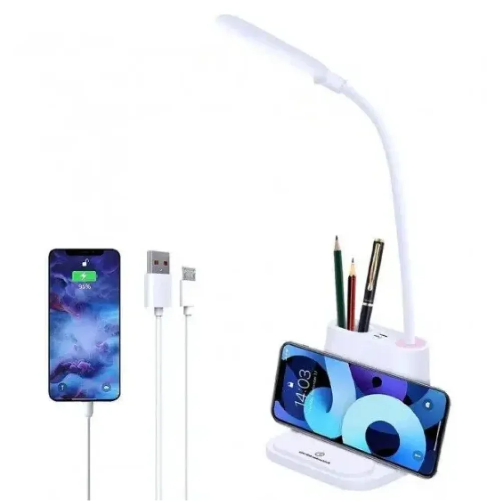 Многофункциональная настольная светодиодная LED лампа сделана из матового экологичного ABS пластика и оснащена встроенным аккумулятором, который позволит использовать лампу без подключения к сети несколько часов подряд. Заряжается данная лампа через стандартный micro USB вход на боковой поверхности подставки.