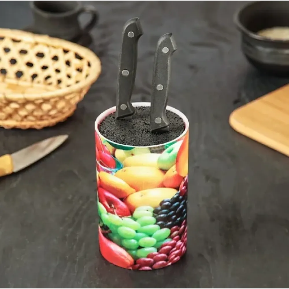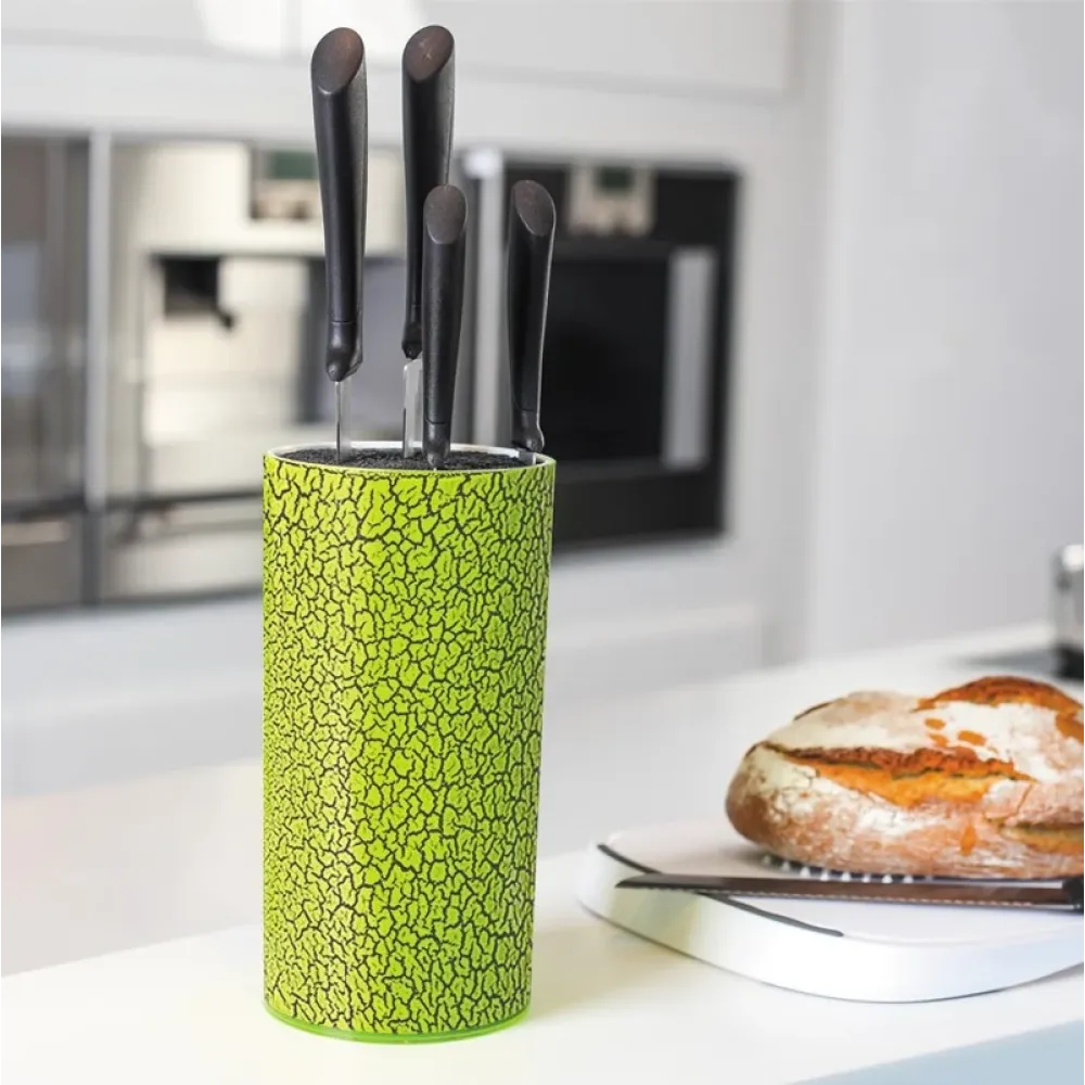 Підставка для ножів використовується для точного зберігання ножів. Відділення для ножів виконано тонкими пластиковими соломинками, що дає можливість залишити ножі будь-яким і зберігати будь-яку кількість ножів і аксесуарів різного розміру, вони просто розгортаються і утримують предмет. Використовується як для металевих, так і для керамічних ножів. Така підставка не тільки дуже зручна, але послужить прекрасним подарунком, а також прикрасить і доповнить інтер'єр будь-якої кухні.