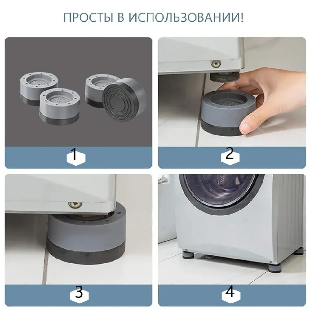 Заказывайте Универсальные антивибрационные подставки для стиральной машины, холодильника и мебели прямо сейчас на нашем сайте! |