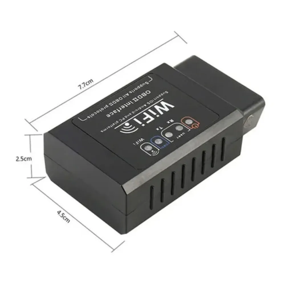 Автосканер ELM327 WI-FI Диагностический сканер адаптер OBD2 V1.5 Android iOS Обд2 елм327 универсальный для автомобиляСканер ELM327 является универсальным устройством для проведения диагностики автомобиля. С его помощью можно не только выявлять, но и сбрасывать ошибки, возвращая автомобиль к жизни. В список поддерживаемых машин входят практически все легковые автомобили с OBDII (obd2) диагностическим разъемом, выпущенные после 1996 года. Управлять ELM327 OBD2 V1.5 сканером можно через мобильный телефон или планшет (подойдёт даже старая Nokia на Symbian). Связь с устройством производится посредством беспроводного протокола WiFi. Качественным отличием данного авто сканера от elm327 bluetooth сканеров является использование для управления WIFI, а не блутуза, что позволяет использовать сканер вместе с мобильными устройствами на базе iOS (Iphone, Ipad), а так же использовать целый ряд других преимуществ. Програмное обеспечение находится в свободном доступе в сети интернет, обладающих различными функциональными возможностями, интерфейсами и языковой поддержкой на любой вкус. например: hobDrive, TorquePro, ScanMaster, PcmScan, Proscan,VitalScan и многие другие. Так или иначе, наши покупатели так же получают вместе со сканером пакет рекомендуемых програм. Отличительной чертой ELM327 от аналогов есть его компактный размер, что позволяет использовать устройство стационарно не вынимая его с разъема, отслеживая показатели в режиме онлайн. При помощи данного устройства вы можно выполнять следующие операции: