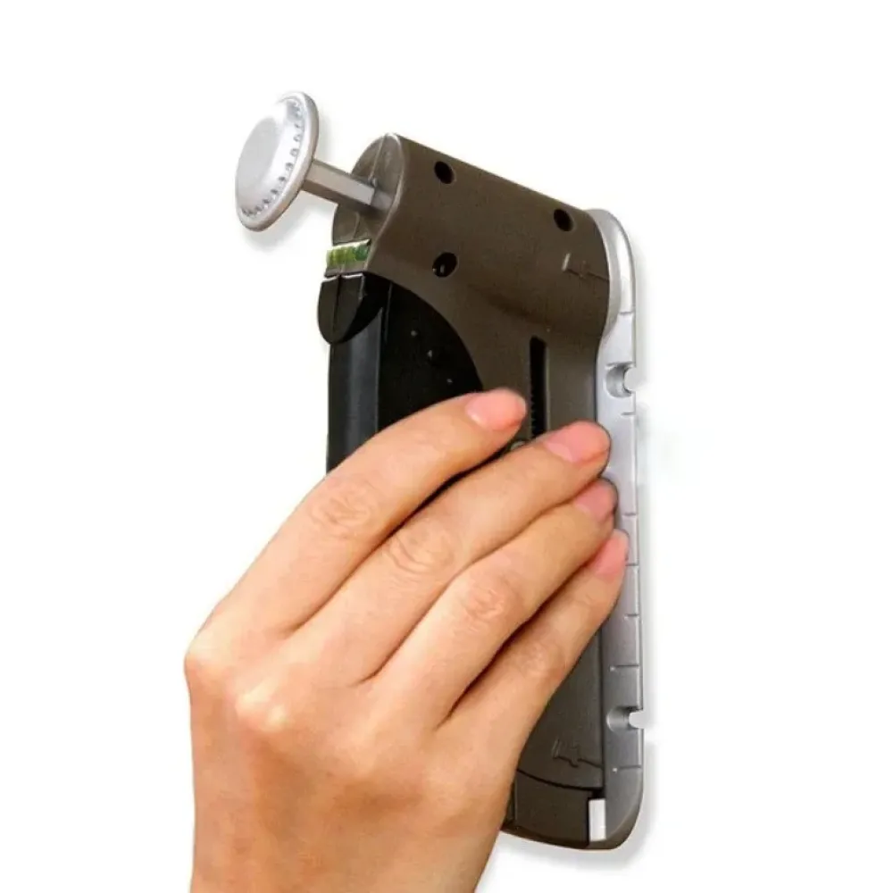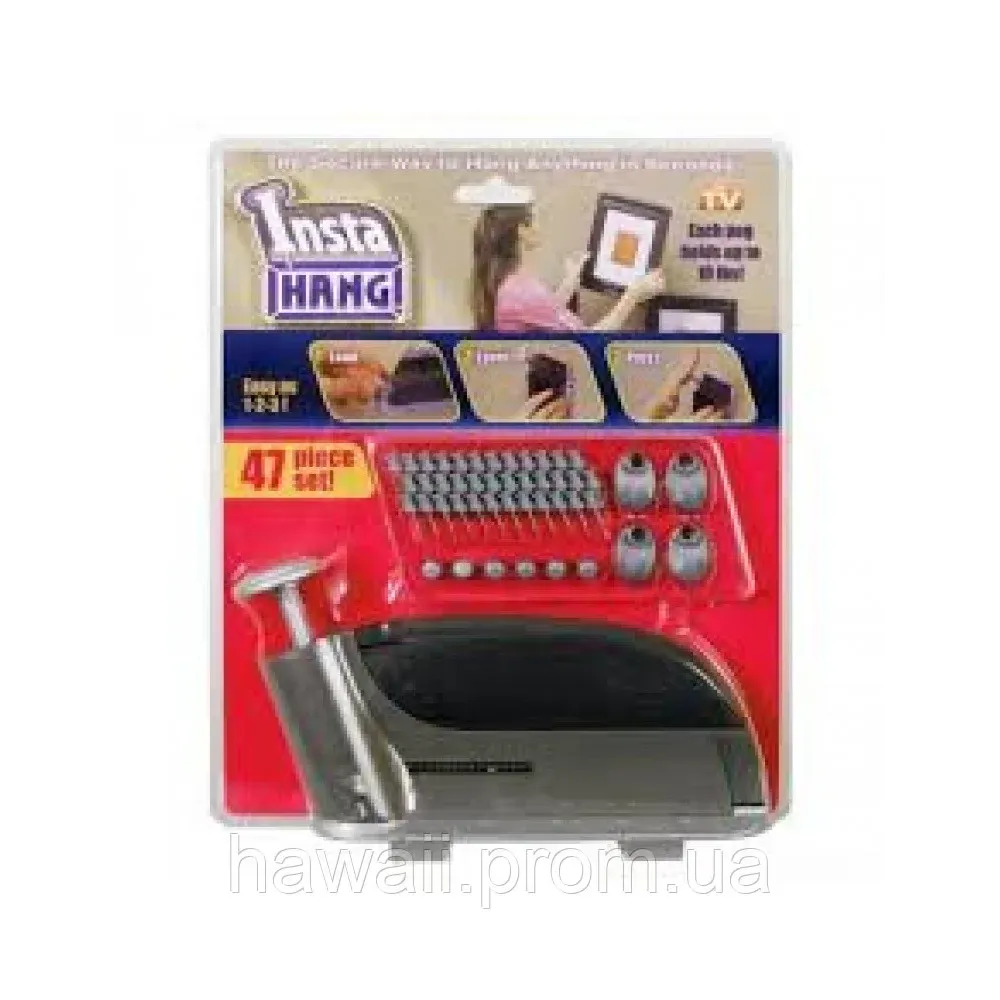 Insta Hang снабжен скрытым отделением для хранения запасных штепселей, колпачков и крючков; встроенным барботажным уровнемером для точного расположения и «пистолетом» для извлечения штепселей. Это превосходное и простое приспособление включает в себя все, что вам может понадобиться для немедленного и точного крепления любого предмета.