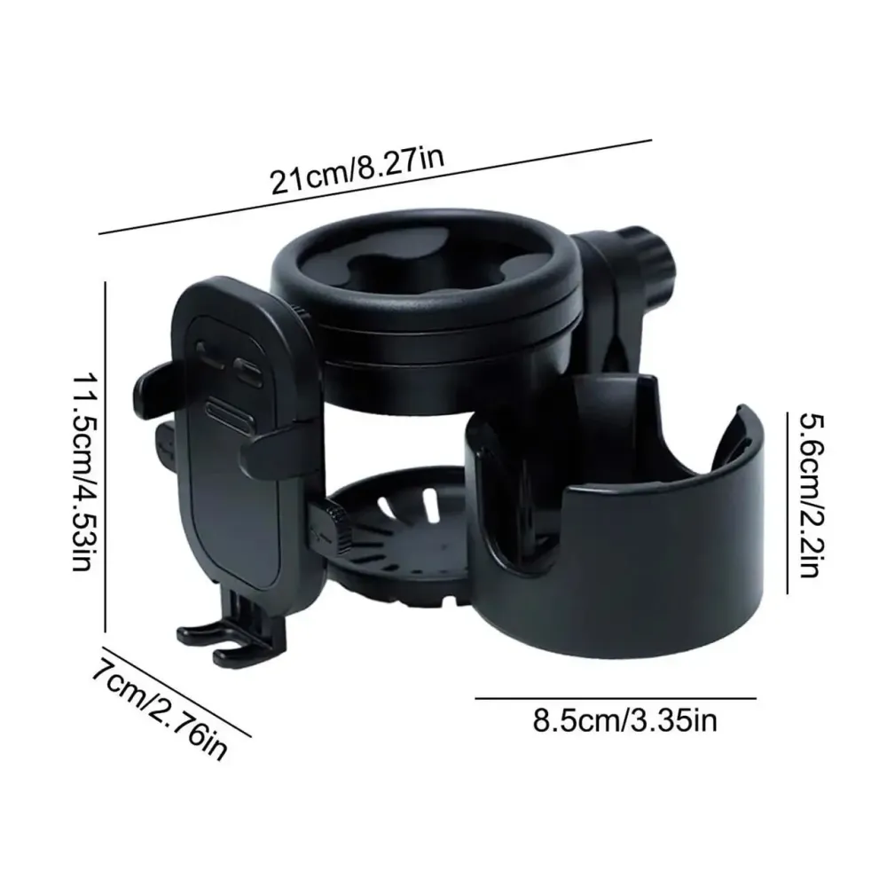 Универсальный подстаканник 2 в 1 — незаменимый аксессуар во время прогулок с вашим малышом. Он необходим в любое время года, так как позволяет удобно разместить стакан с кофе или бутылку объемом 0,33–0,5 литра. Благодаря подстаканнику напитки всегда будут под рукой, и вам не придётся беспокоиться о разлитой жидкости в корзине или сумке коляски.