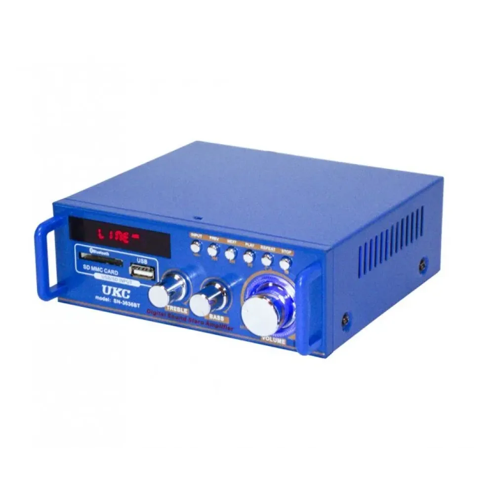 Качественный и чистый звук основа любой звуковой системы. Для этого разработаны усилители, которые простые в управлении и сделают звучание особенным. Усилитель звука UKC SN-3636BT – отличное устройство, по хорошей цене. Усилитель звука UKC SN-3636BT – интегральный усилитель с Bluetooth и FM тюнером. Воспроизводит аудио файлы MP3 и Wave с USB накопителей (флешки или жесткий диск) и карт памяти SD, отформатированных в FAT32, размером до 32 Гб.