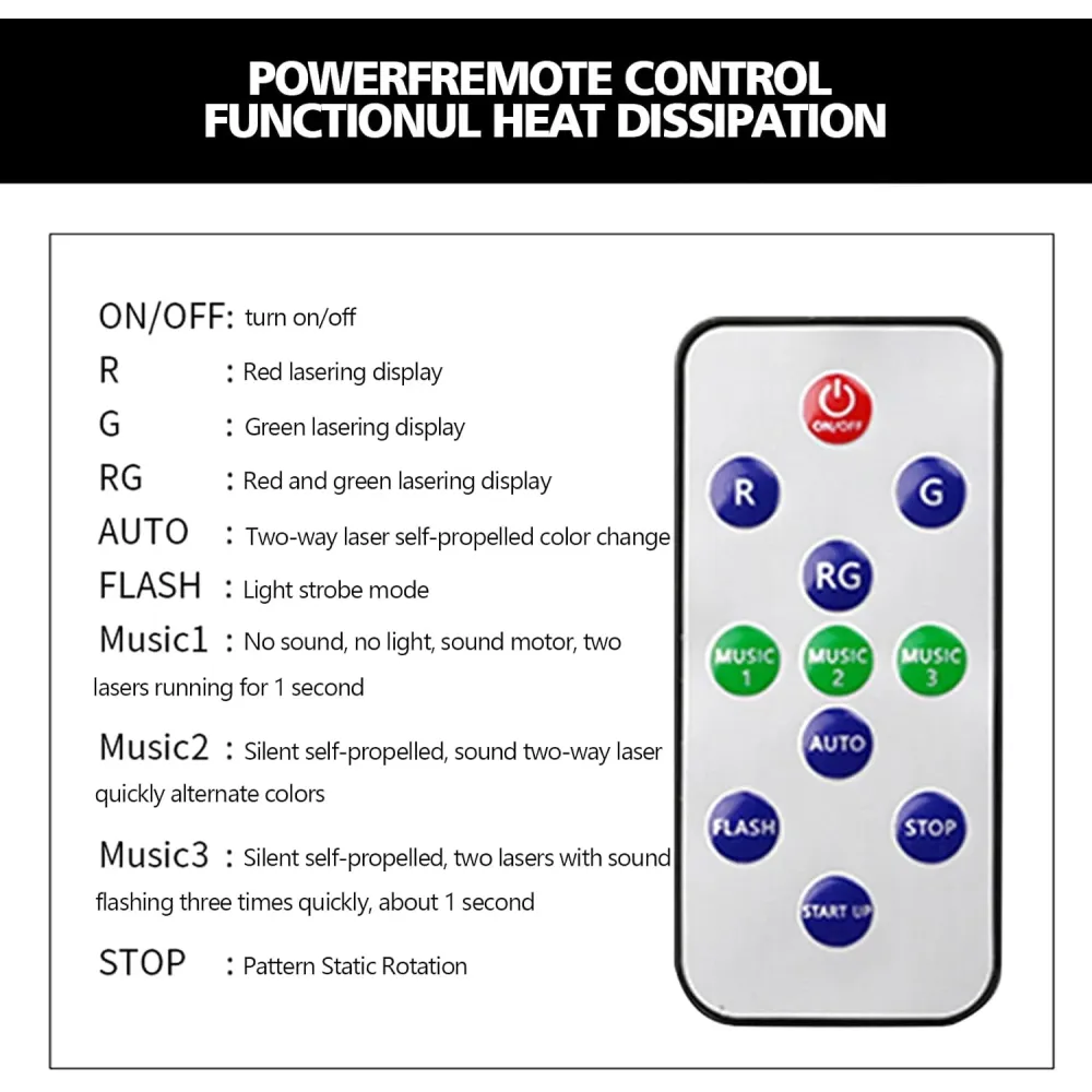 • Красный и зеленый лазер с автозапуском или синхронизацией с музыкой