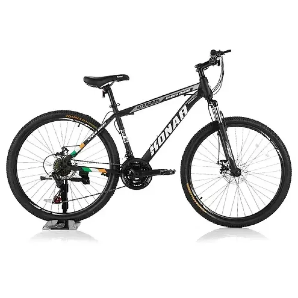 Konar KS-26″17 — горный велосипед, отличный вариант, чтоб без проблем ездить и по городу, и по лесным дорожкам, и даже там, где дорог нет вовсе. Прекрасно подходит для ежедневных прогулочных поездок и для дальних вылазок на природу.