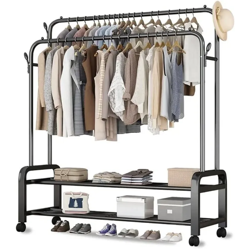• Многофункциональность: двойная стойка-органайзер для одежды и обуви