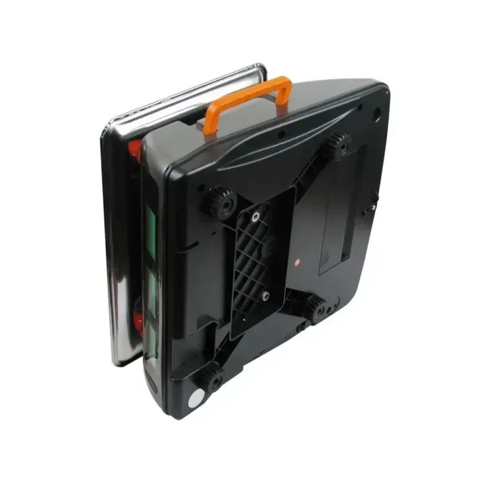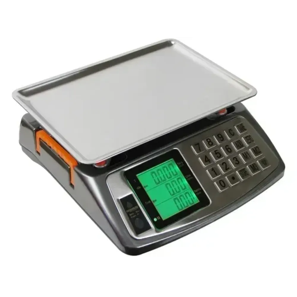 Эти электронные торговые весы отличаются прочным металлическим корпусом с удобной пластиковой ручкой и надежными металлическими кнопками. Платформа выполнена из нержавеющей стали с бортиками, обеспечивая долговечность и гигиеничность. Для точного выравнивания предусмотрен встроенный индикатор уровня, а регулируемые ножки компенсируют неровности поверхности.